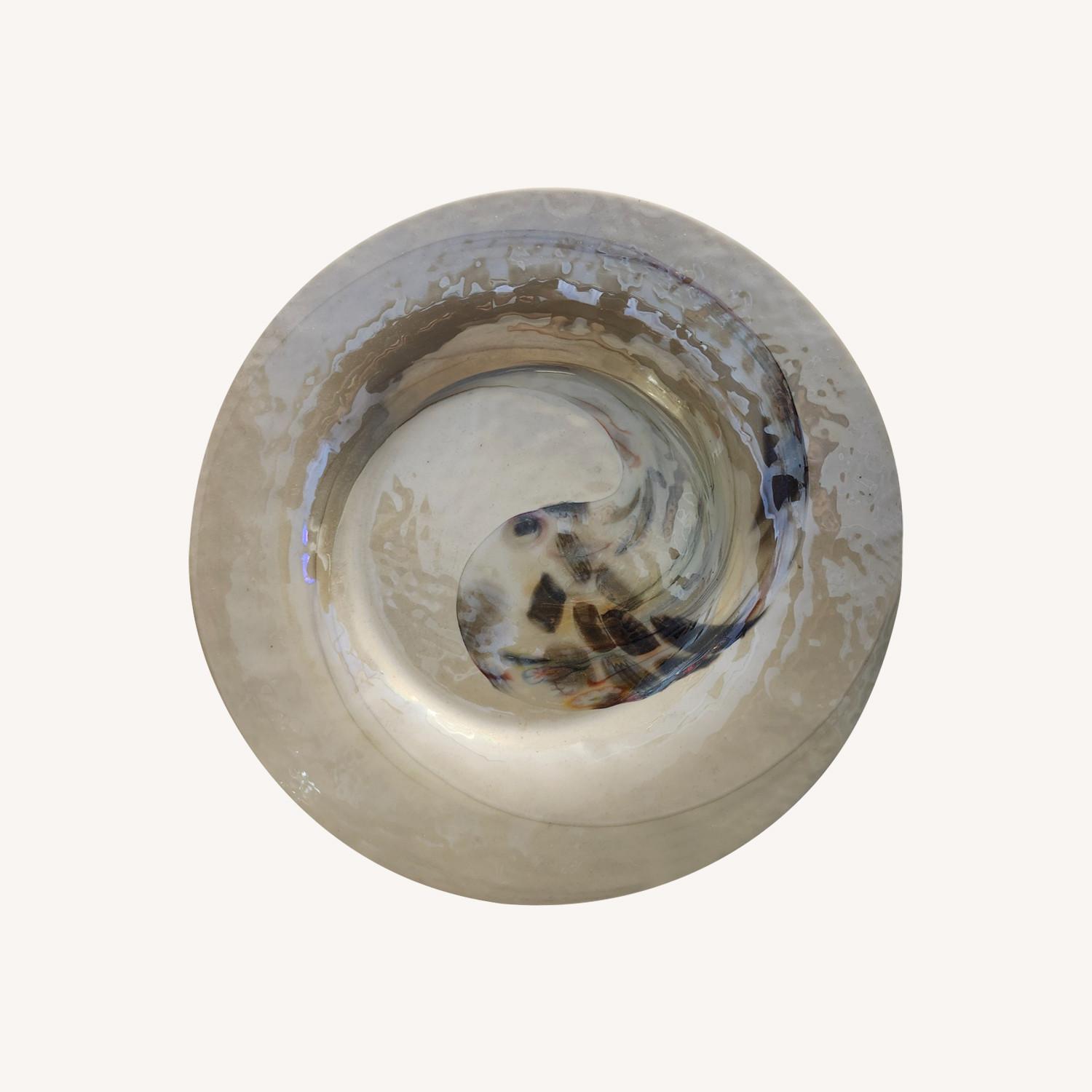 Seller's Notes:Beautiful Yalos Casa opalescent hand blown glass plate by Murano. Notice the different colors represented in the swirl. Weighs around 7lbs. Made in Italy with orginal authentic tag.
