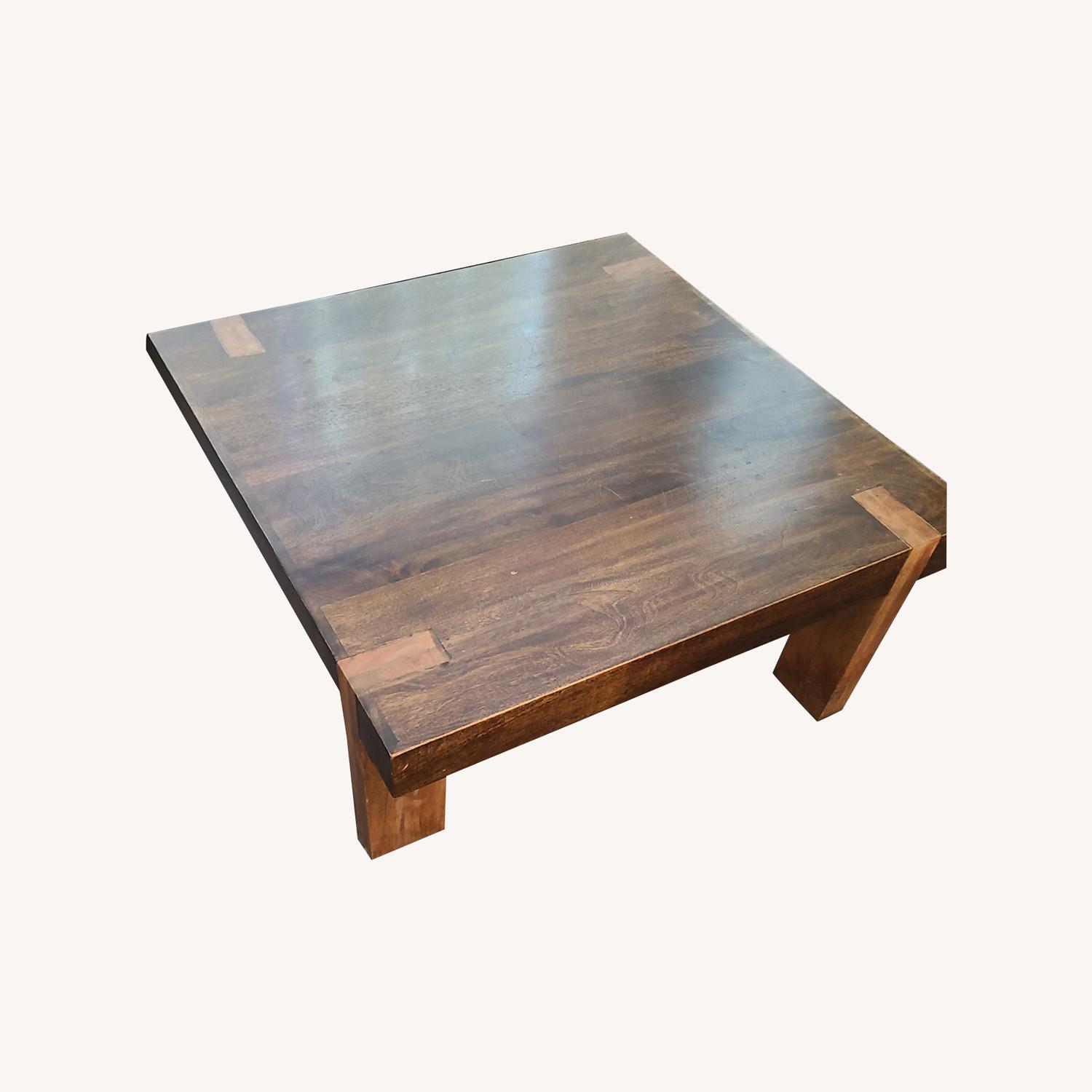 Seller's Notes:Made of solid hardwood, the Arcadia coffee table features thru legs and a wrapped edge to create a thicker top. Dimensions are: Height = 16 inches Width = 38 inches Depth = 38 inches