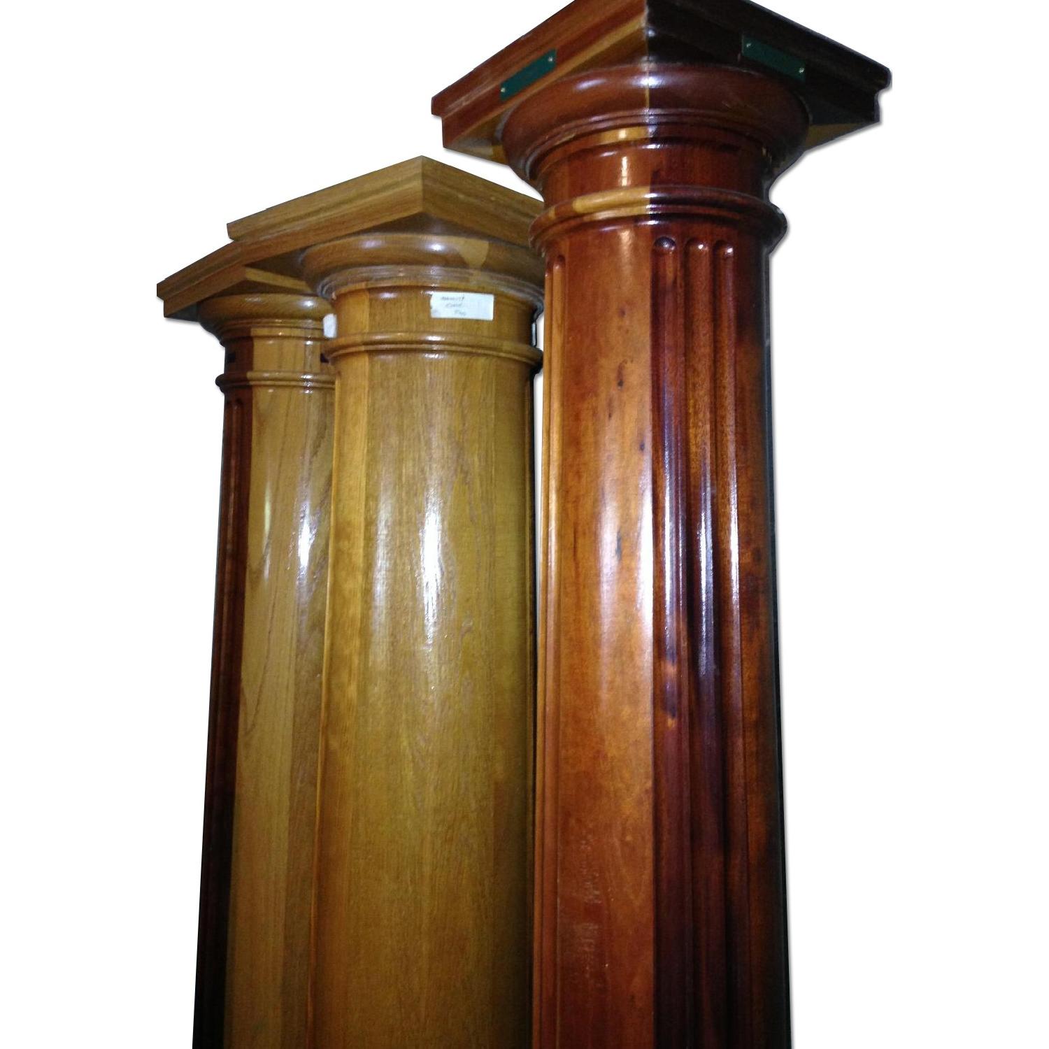 Seller's Notes:These are salesman samples of architectural hardwood columns. THey are custom and made to my specs. Each shaft consists of different species of hardwood. Tuscan capital and base are white oak 2 pcs. 12" bottom dia x 8' overall height. 1 pc 10" dia x 8' overall height. They are beautiful.