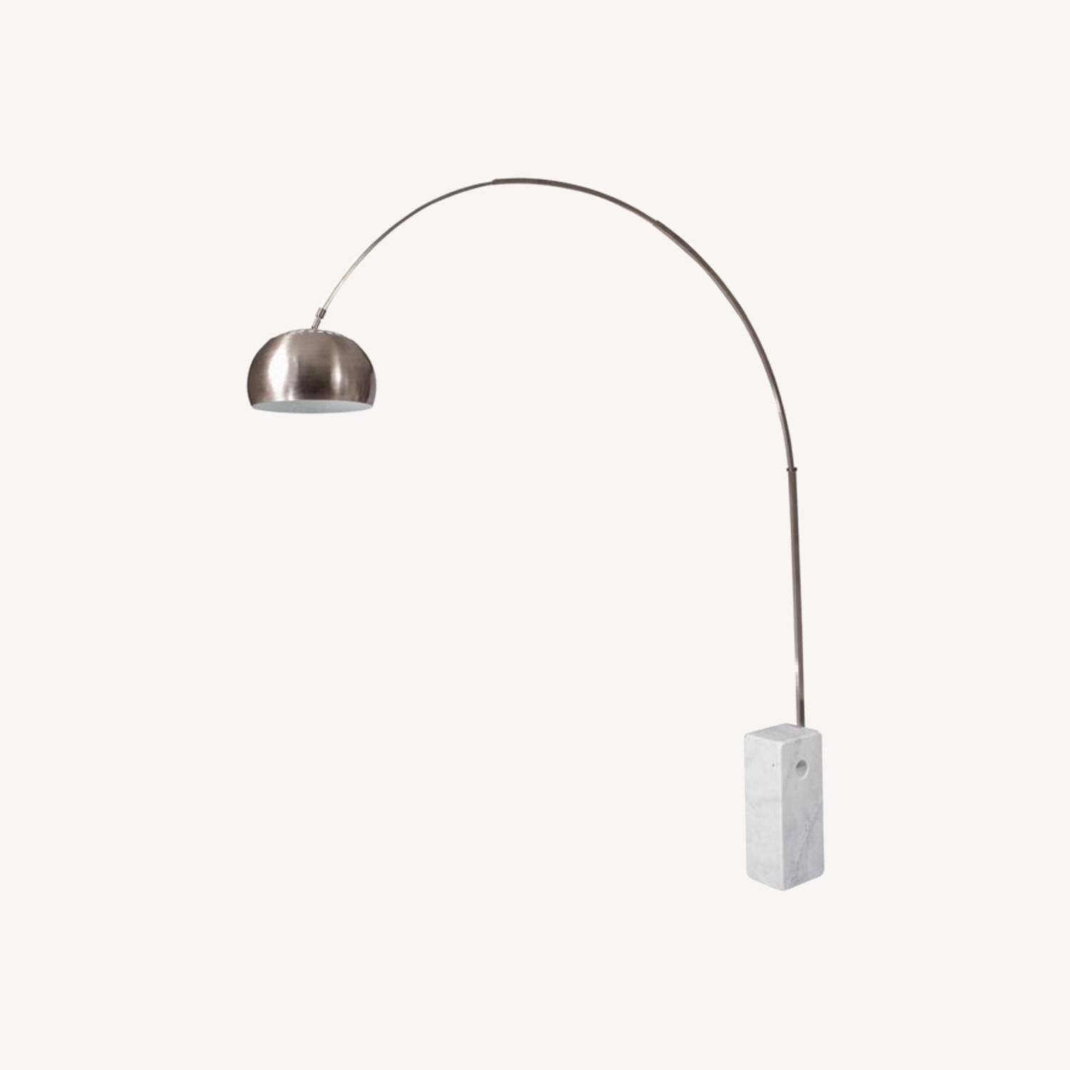 Seller's Notes:Arco Lamp Replica, steel arm with a marble base Base: H21 in x W7 in in x D10 in We’re moving and it won’t fit in our new place.