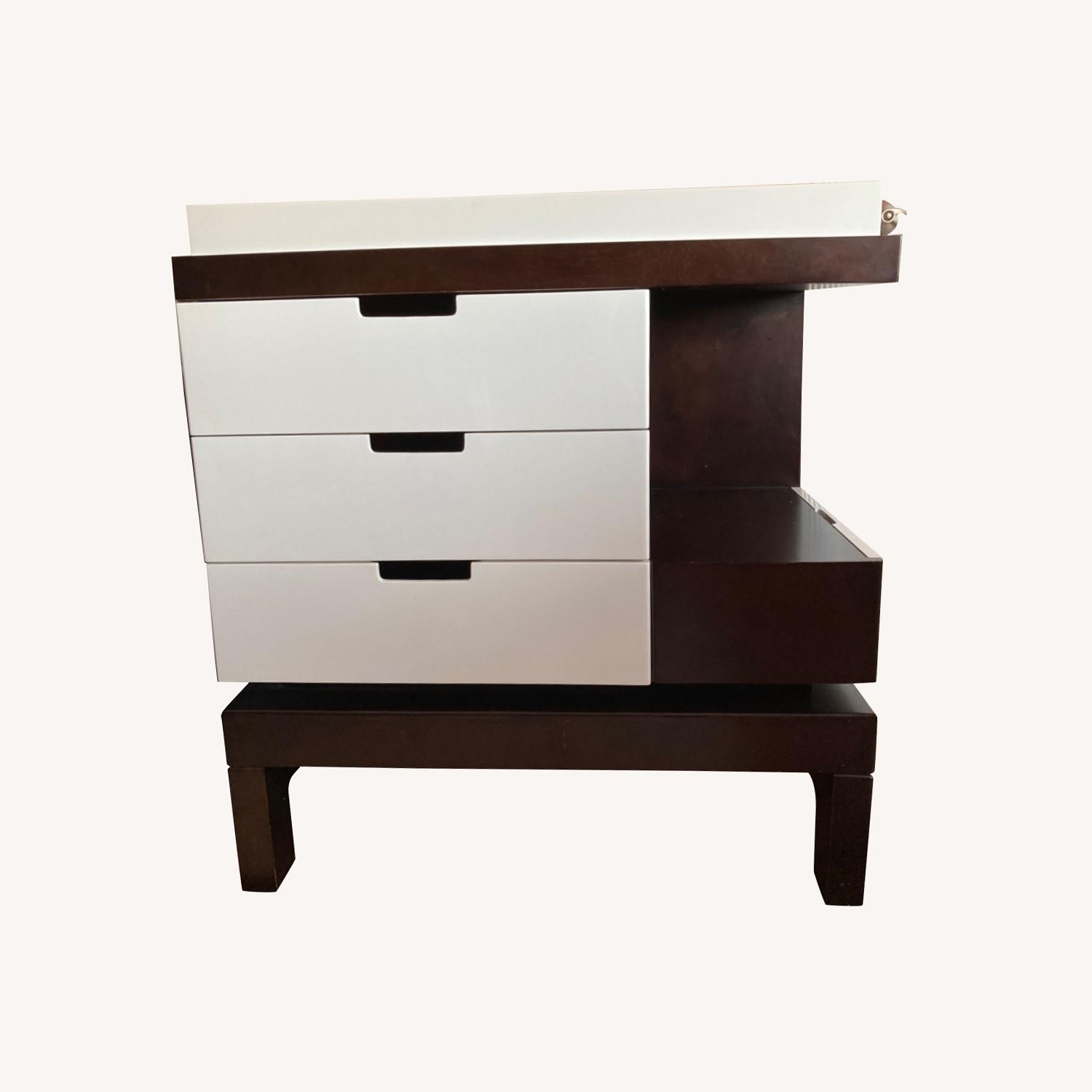 Seller's Notes:Aesthetically pleasing well made high end baby dresser and changing table. White drawers, and top are lacquered. Ample storage space for baby clothes and all changing items, diapers, lotions, wipes, etc.. can even be used for storage once your baby grows out of the changing table.