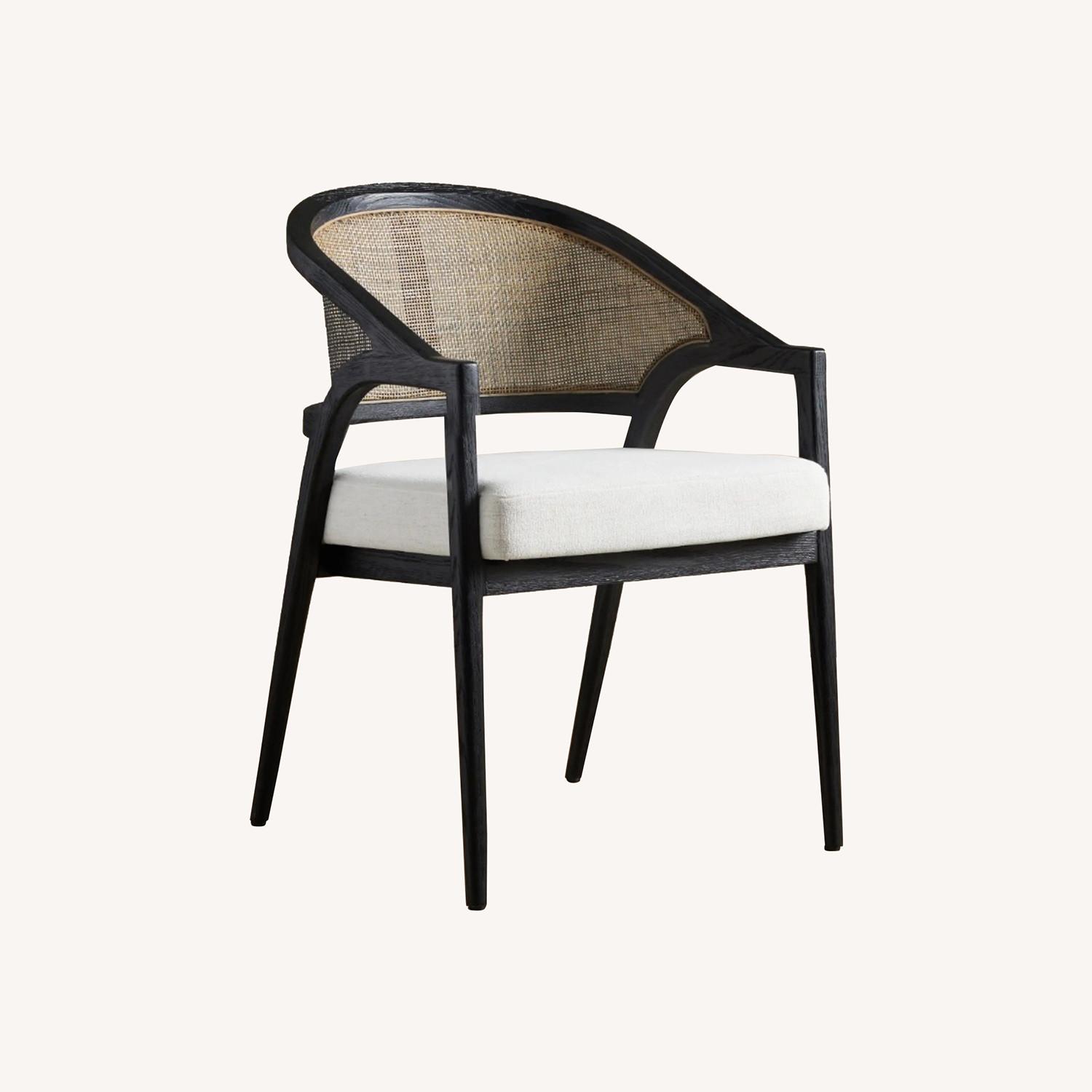 Seller's Notes:With a softly curved back, rattan caning, and chic flared legs, the Aimee Dining Collection is thoughtfully crafted to capture the styles of both classic French antiques and iconic midcentury modern designs. Each frame is made from solid oak wood paired with a generously upholstered cushion resulting in welcoming comfort that complements any aesthetic.