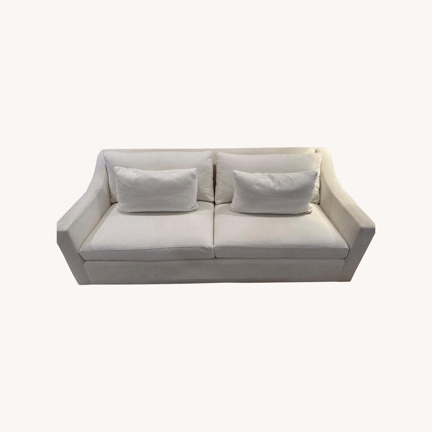 Seller's Notes:Arhaus Ashby sofa in Graceland Snow Crypton performance fabric (cleans exceptionally well), which is great for a white sofa. Purchased new two years ago and looking for something larger. Listing says normal wear but it is like new. Cushions are down feather with removable and washable covers on all cushions. Solid wood frame and fully built in the US (North Carolina). Dimensions are 84" wide, 39 " deep, and 35" high. Pick up in Beverly on main level (two steps down to the outside). Non-smoking home and no pet hair. Currently $3,200 new (on sale): https://www.arhaus.com/products/ashby-sofa?variant=42976511557803