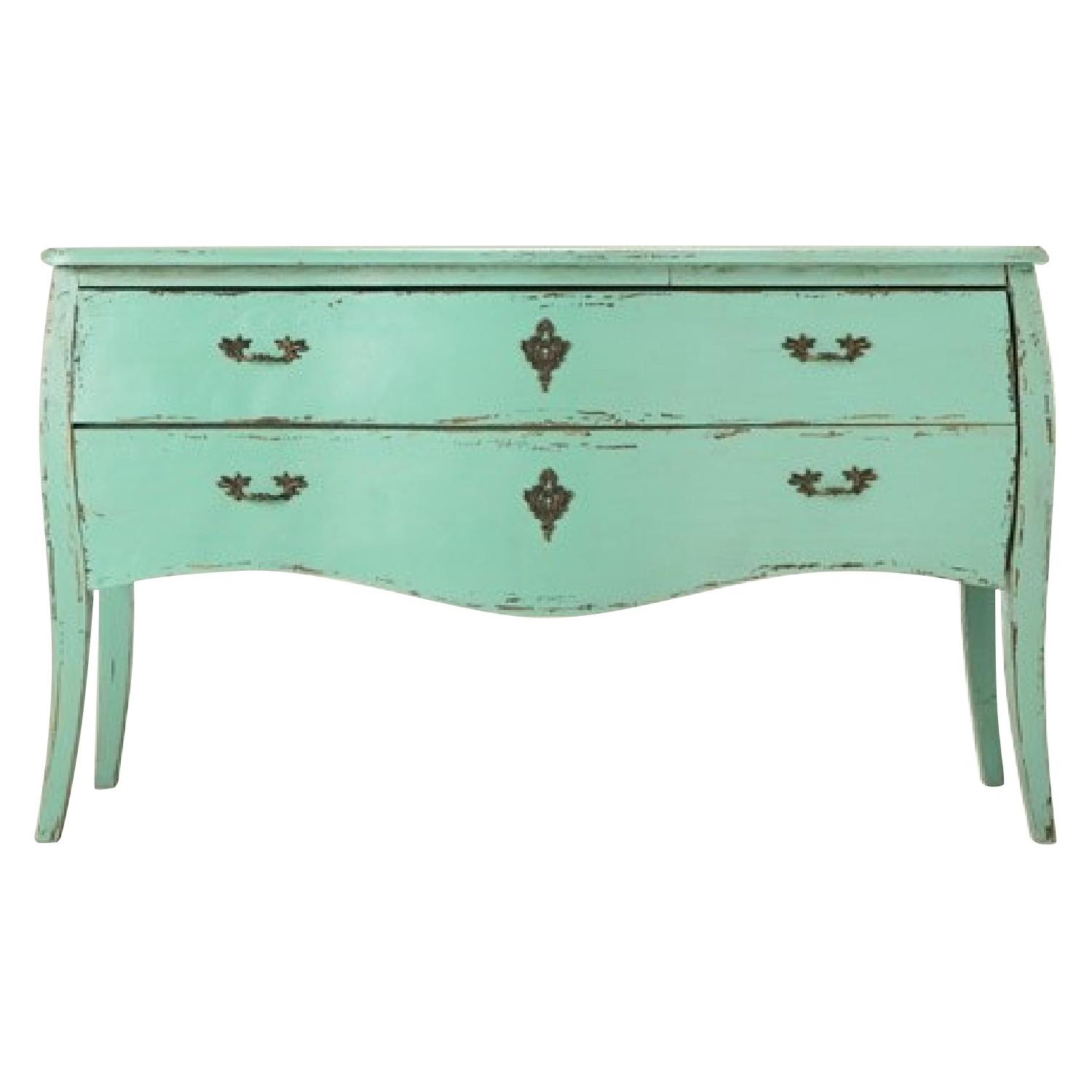 Seller's Notes:Distressed turquoise dresser from Arhaus, 5 years old, beautiful piece, barely worn. Selling because I have to move and am sad to part!