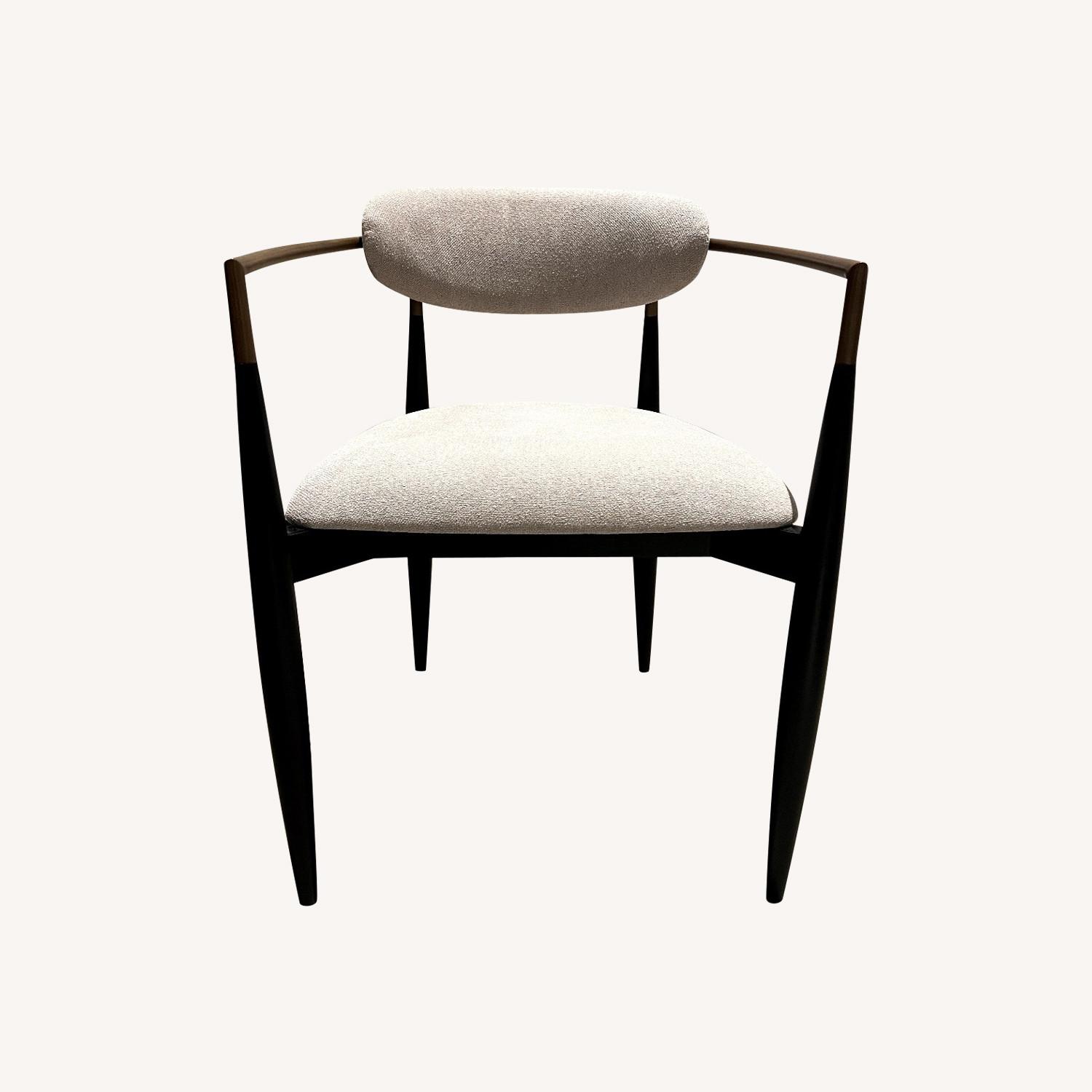 Seller's Notes:Handcrafted by artisans in Indonesia, our Jagger Dining Seating Collection delivers a sleek modern design paired with unfailing comfort. Hand-stained frames crafted from solid mahogany wood are complemented by warm metal accents, creating an elevated aesthetic perfect for any gathering space. Our sustainably certified Crypton® Downy Home Performance Fabrics are easy to clean, soft, and durable—engineered with stain-, odor-, and moisture-resistant technology in every fiber. Cary Performance Fabrics are extremely durable and resist stains and fading while remaining beautiful and soft to the touch. Hand-applied finish is sealed with clear lacquer for added protection and subtle sheen. DIMENSIONS 22" Width x 21.5" Depth x 41.5" Height NOTE: I bought them brand new at Arhaus about six months ago and barely used them for $599 (you can check them out at https://www.arhaus.com/products/jagger-dining-side-chair). I am selling each for less than half as we are moving out of the country and cannot take them.