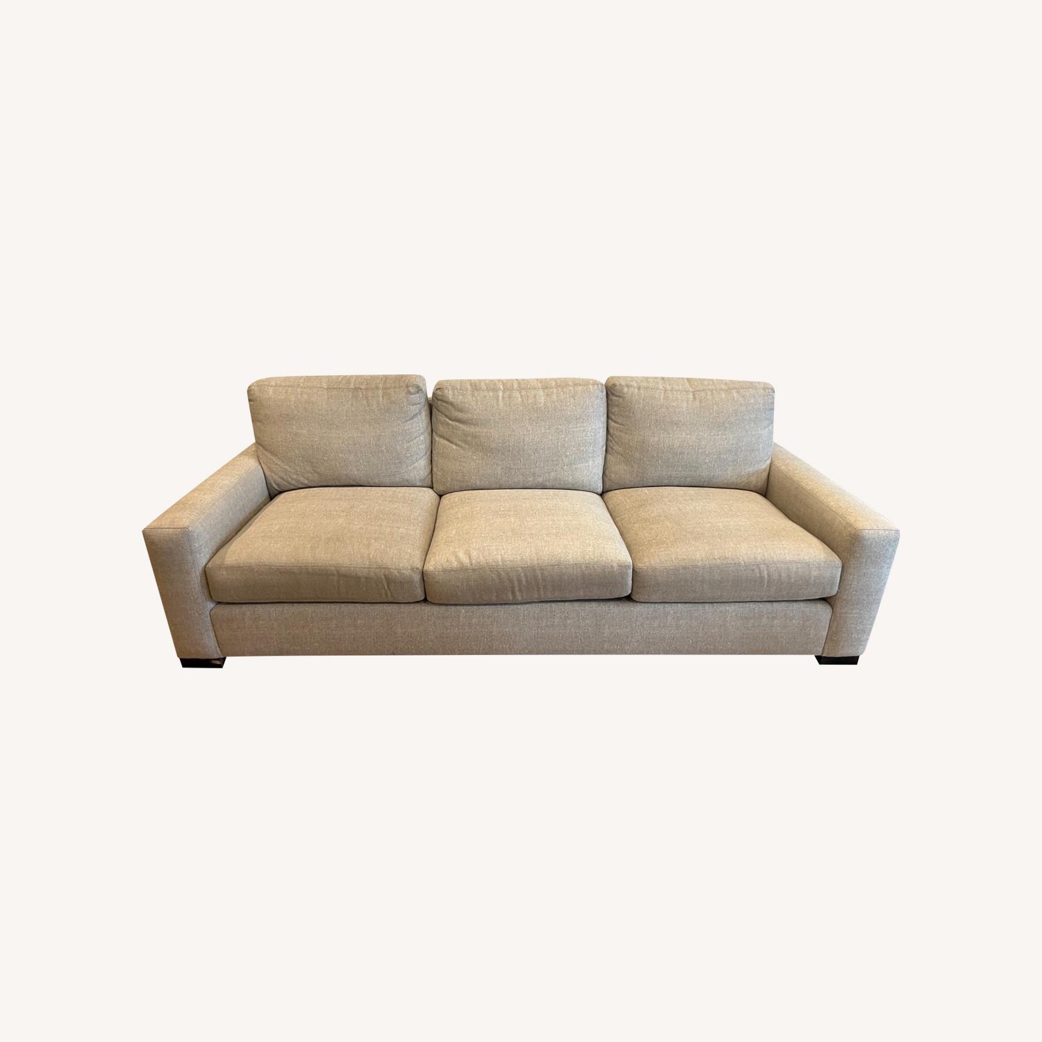 Seller's Notes:7 year old Arhaus Remington Sofa. Custom Sunbrella Topsail Pewter fabric with walnut legs. Sofa has been well cared for (no pets allowed on couch) and professionally cleaned annually. It does has light scratching on the front left leg and water stains underneath the cushions that are shown in the images. It is in good shape, very comfortable and has many years left in it.