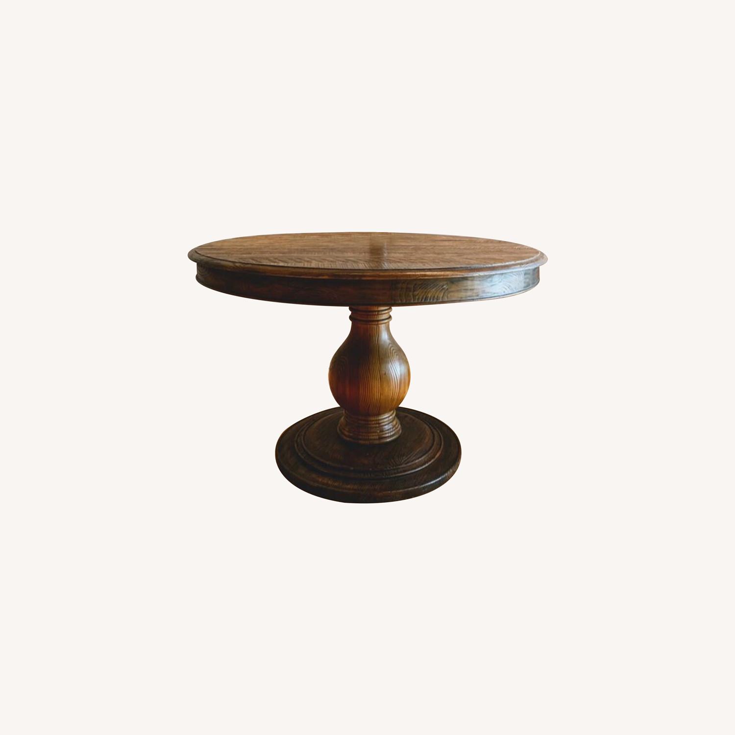 Seller's Notes:Luca Dining Collection Solid pine wood is salvaged from old structures and artfully refurbished Frames are durably assembled by our craftsmen, who sculpt each elegant curve, adding subtle accents to each surface. Then, finishes are carefully layered and distressed to highlight the materials’ naturally varying color and texture, imparting each piece with a rugged beauty that will form a perfect focal point in your dining space. 2 Pieces: tabletop and pedestal