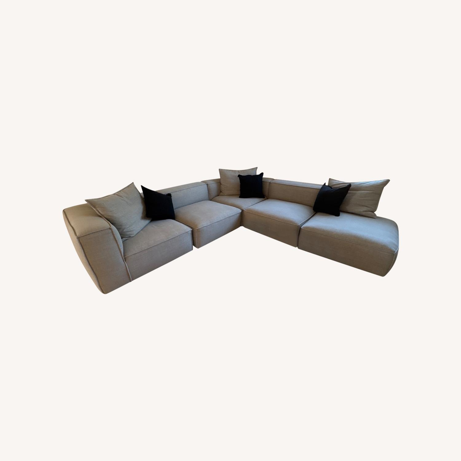 Seller's Notes:Better than new - Arhaus sectional with Crypton Home Performance Fabric. No spring sags with solid reinforced hardwood. 123” x 78” x 41” depth x 48” height. Fully customizable with an additional 37” x 37” ottoman (shown here to the right side of sectional) that can be added to either side or used as a coffee table by adding a beautiful tray on top.