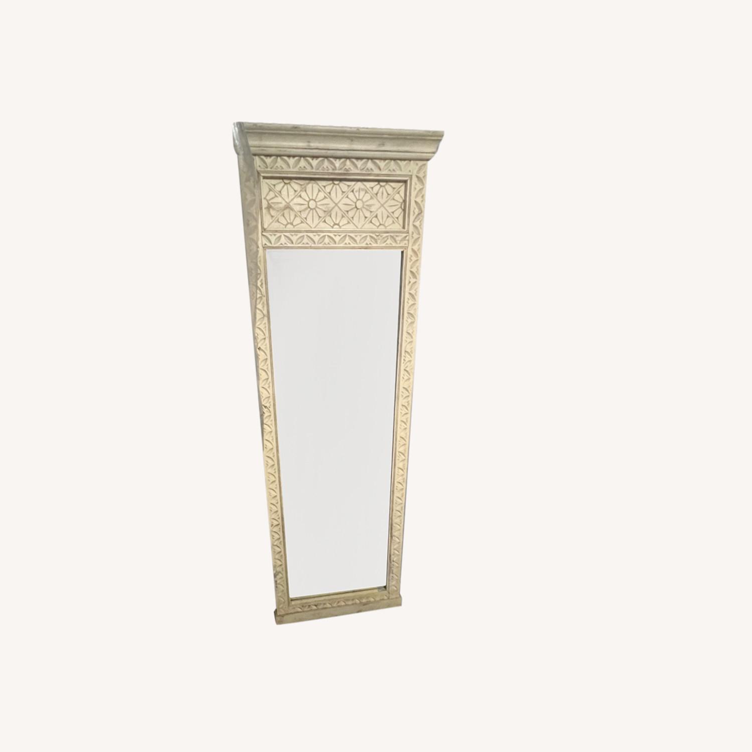 Seller's Notes:Arhaus standing mirror, lovely wooden decorative framing in off-white/cream color Loved this item! Only selling due to a move.