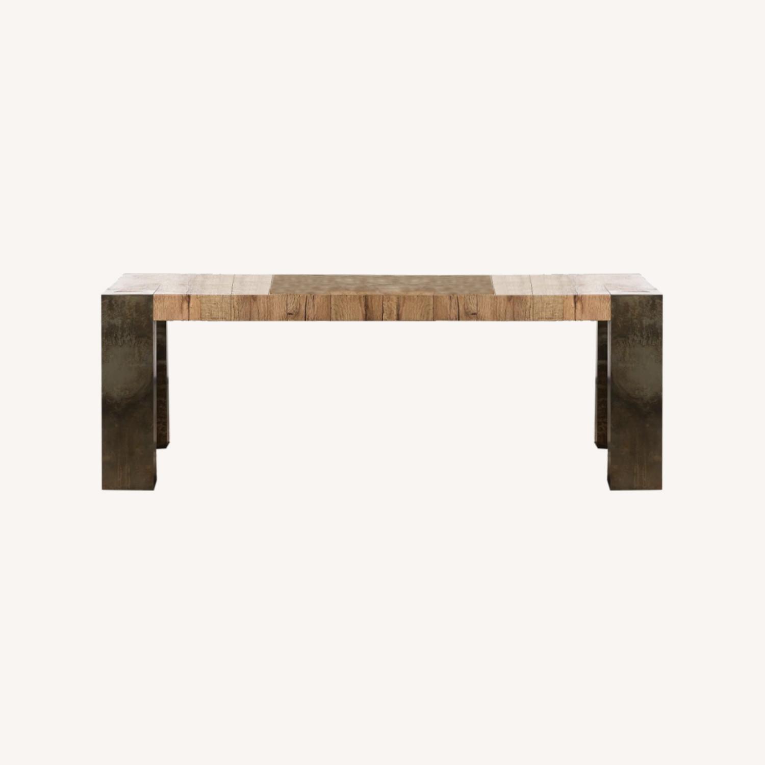 Seller's Notes:-Description: The Telluride Dining Table by Arhaus is a masterclass in craftsmanship and natural materials. Handcrafted from solid oak wood and veneers, this table features uniquely oxidized steel panels that give it a one-of-a-kind look with a distinctively weathered patina. Its robust design is ideal for creating a statement in any dining room. Retails for $4,600 https://www.arhaus.com/products/telluride-dining-table?variant=40869660557483 -Dimensions: 72" Width x 44" Depth x 30" Height -Material: Solid oak and oxidized steel -Condition: Like new, from a smoke-free, pet-free, child-free home. -Availability: Pickup in West Village on April 29th or 30th. Delivery available for an additional fee. -I’m selling much more furniture. For a complete list of items, please click here: https://bit.ly/ejfurniture