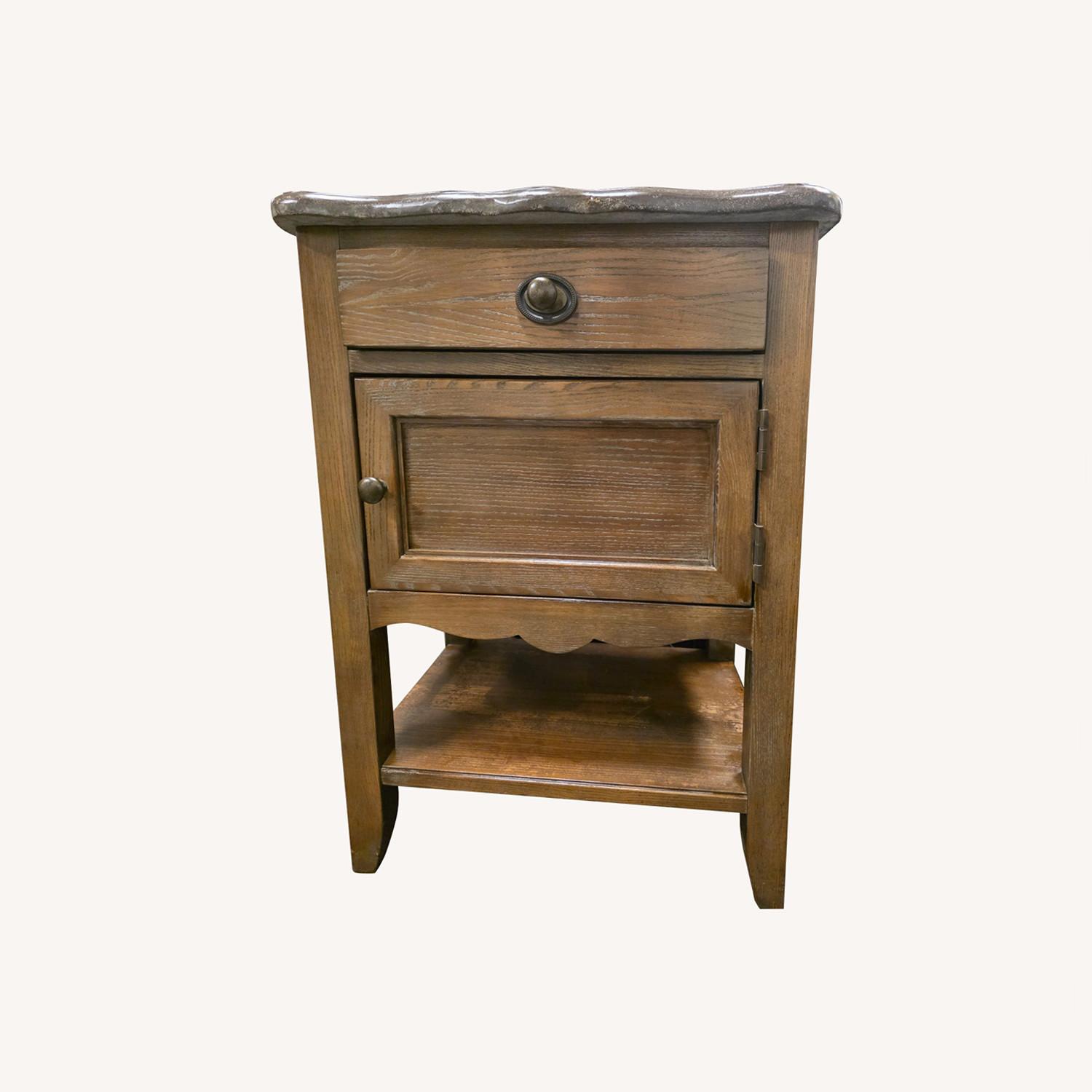 Arhaus Wooden Nightstand with Stone Top