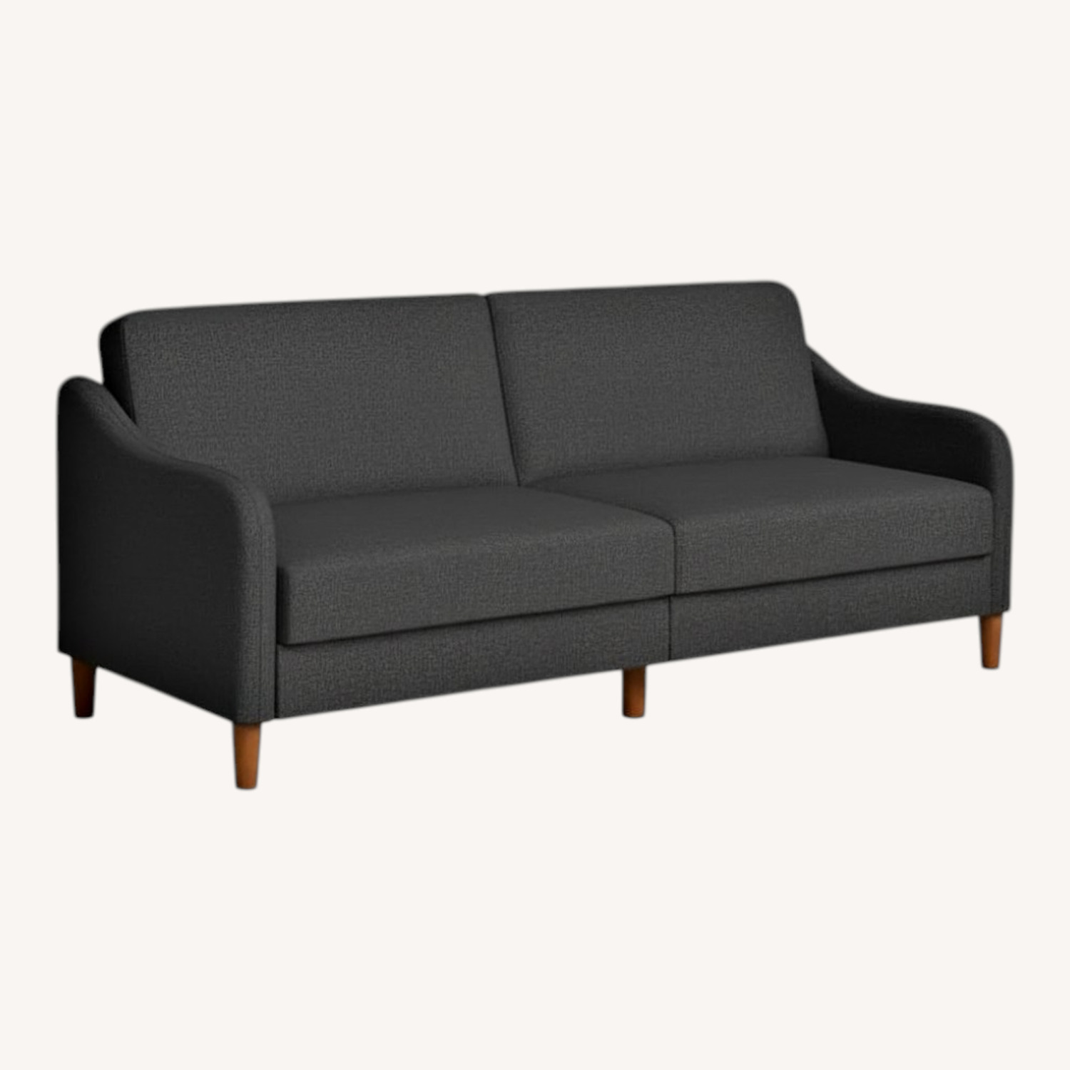 This clean-lined convertible sofa easily turns into a twin-sized bed to accommodate extra overnight guests. The solid and engineered wood frame is built on tapered legs, and it features rounded arms for an elegant look. This sofa is wrapped in stain- and mildew-resistant linen, so it stands up to everyday use. The foam-filled cushions are filled with foam and coil springs for plenty of support while you sit. Plus, this convertible sofa has a multi-position back, allowing you to convert from a sofa to a lounger to a sleeper with a simple push or pull.