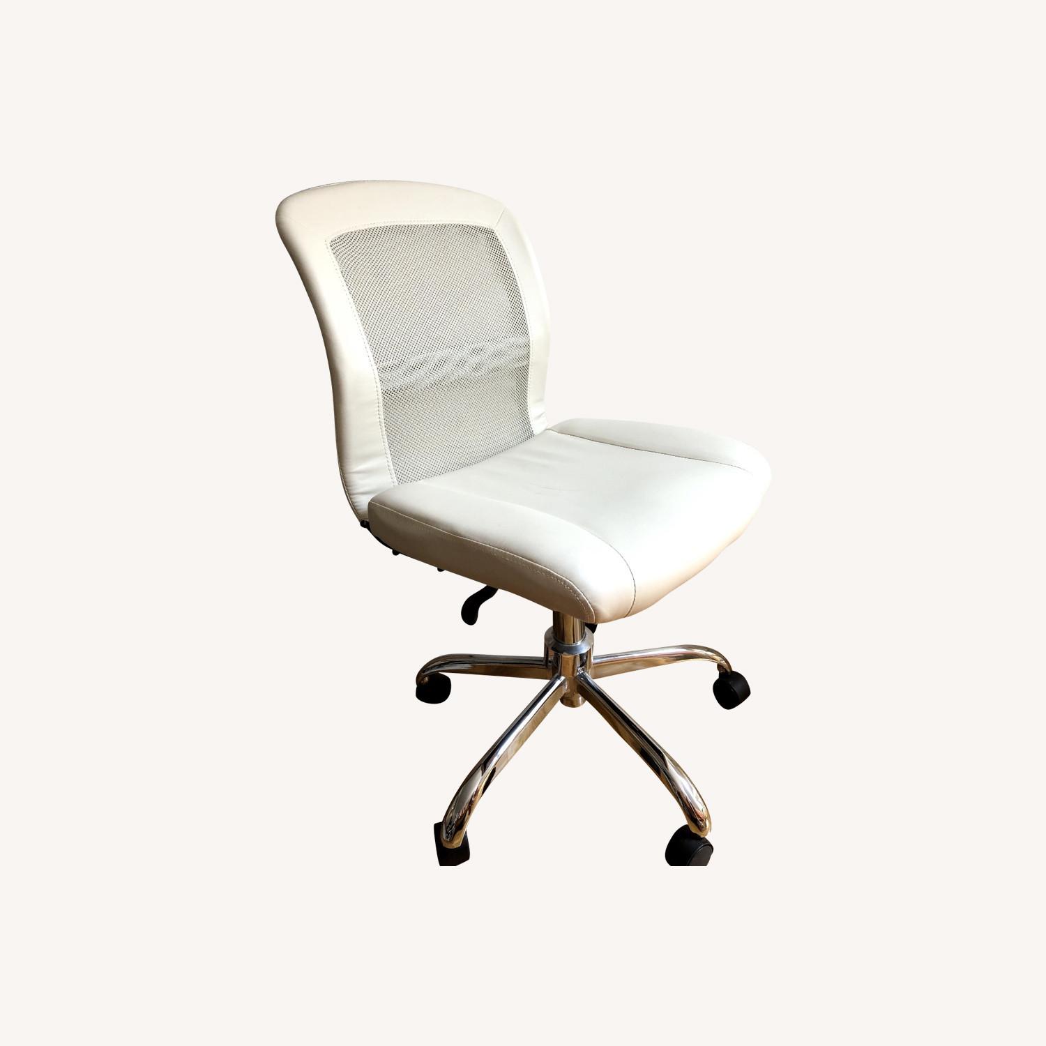Seller's Notes:Comfortable armless desk chair, easy to tuck under any desk or table. Designed with a breathable mesh back to keep you comfortable throughout the day. Seat-height adjustment lever lets you find your ideal position. Multi-directional casters for easy mobility.
