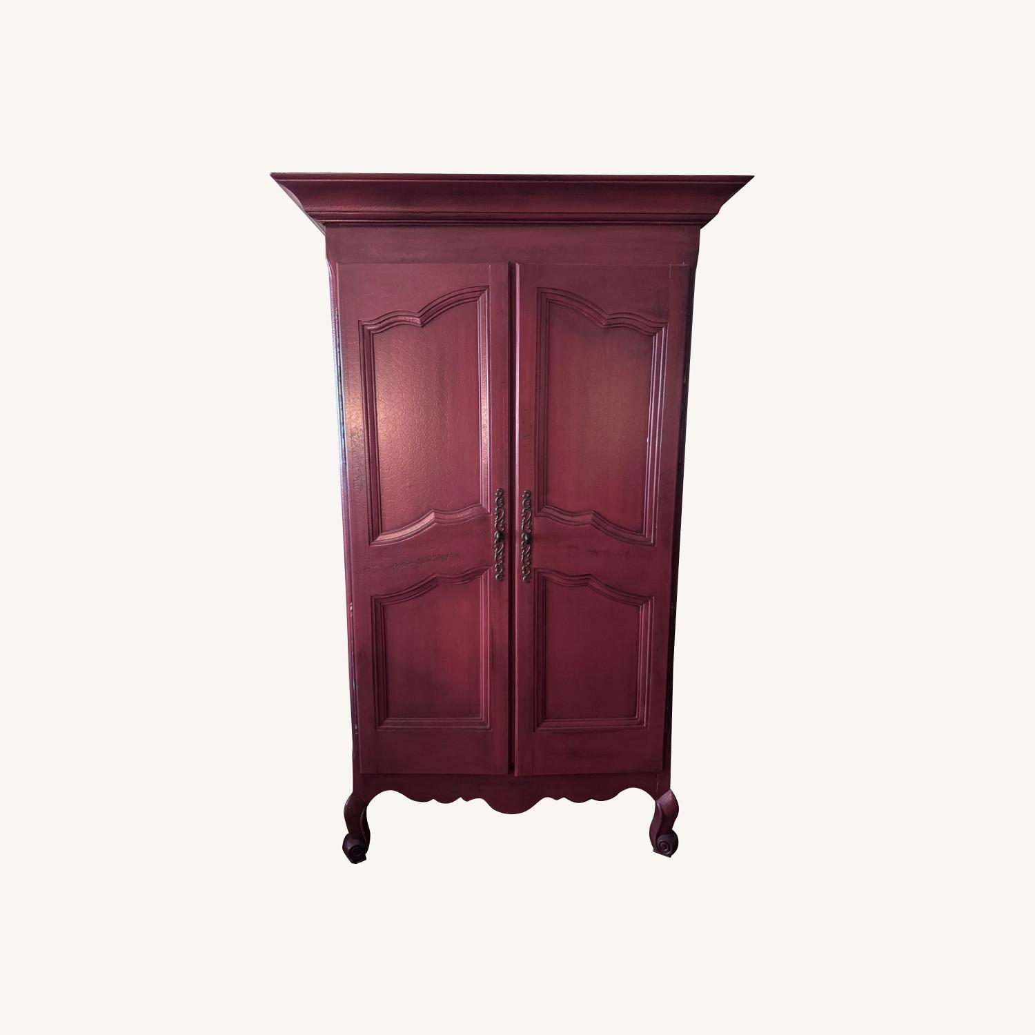 Seller's Notes:Solid wood tv armoire that we used for a barmoire, really spacious, holds a lot! Measurement is 75h x 38 wide x 24. Top trim comes out 45” wide