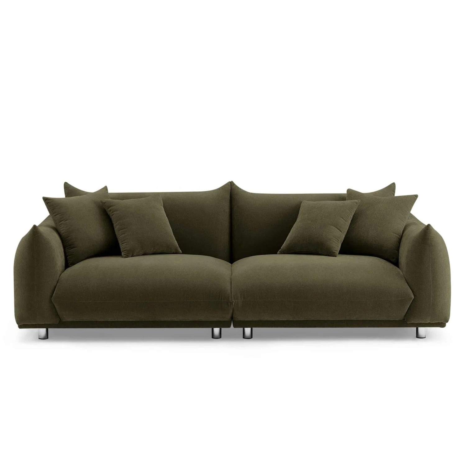 This modern sofa is dressed in a very strong and fashioned fabric. Smooth touching and feeling when you are sitting on it. Perfect-size seat cushions are built up with the high-quality, inner pocket springs surrounded with high-density foam and a solid wood frame for the absolute best seating comfort. Pay attention to the chrome metal legs that fit the nice modern design! Easy to assemble with only fifteen minutes which needs two people together. Including 4pcs pillows just for free.