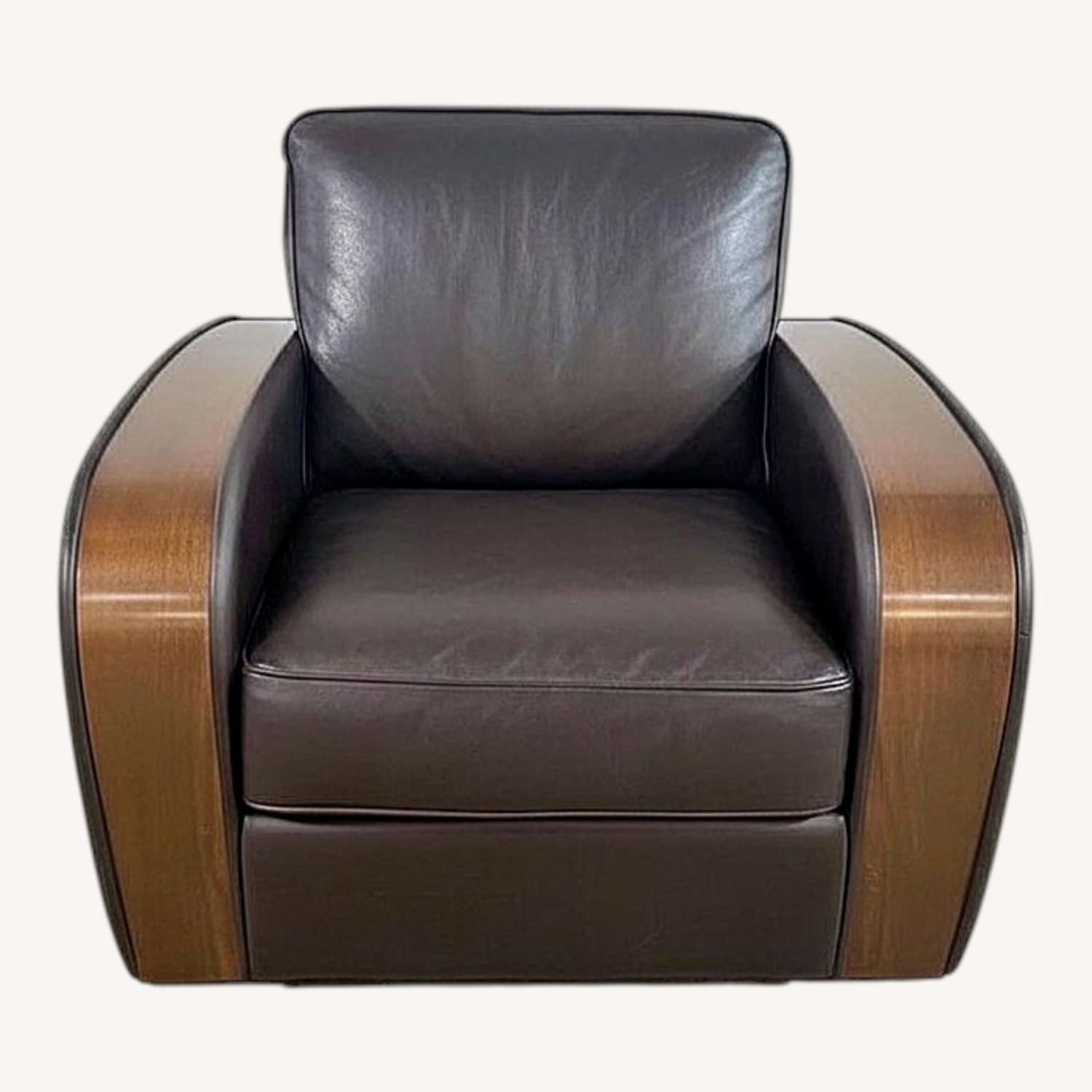 Seller's Notes:Make a statement with this Art Deco Leather & Wood Club Chair, a striking blend of classic craftsmanship and iconic design. Inspired by the glamour of the Art Deco era, this chair features clean lines, rich leather upholstery, and beautifully crafted wood accents that add depth and character to any space. The supple leather provides a comfortable, inviting seat, while the solid wood frame ensures durability and timeless appeal. Its structured silhouette and refined details create a perfect balance of style and support—ideal for lounging, reading, or elevating your living room or office. Distinctive and elegant, this club chair is more than just seating—it’s a conversation piece that brings vintage charm and sophisticated flair into your home.