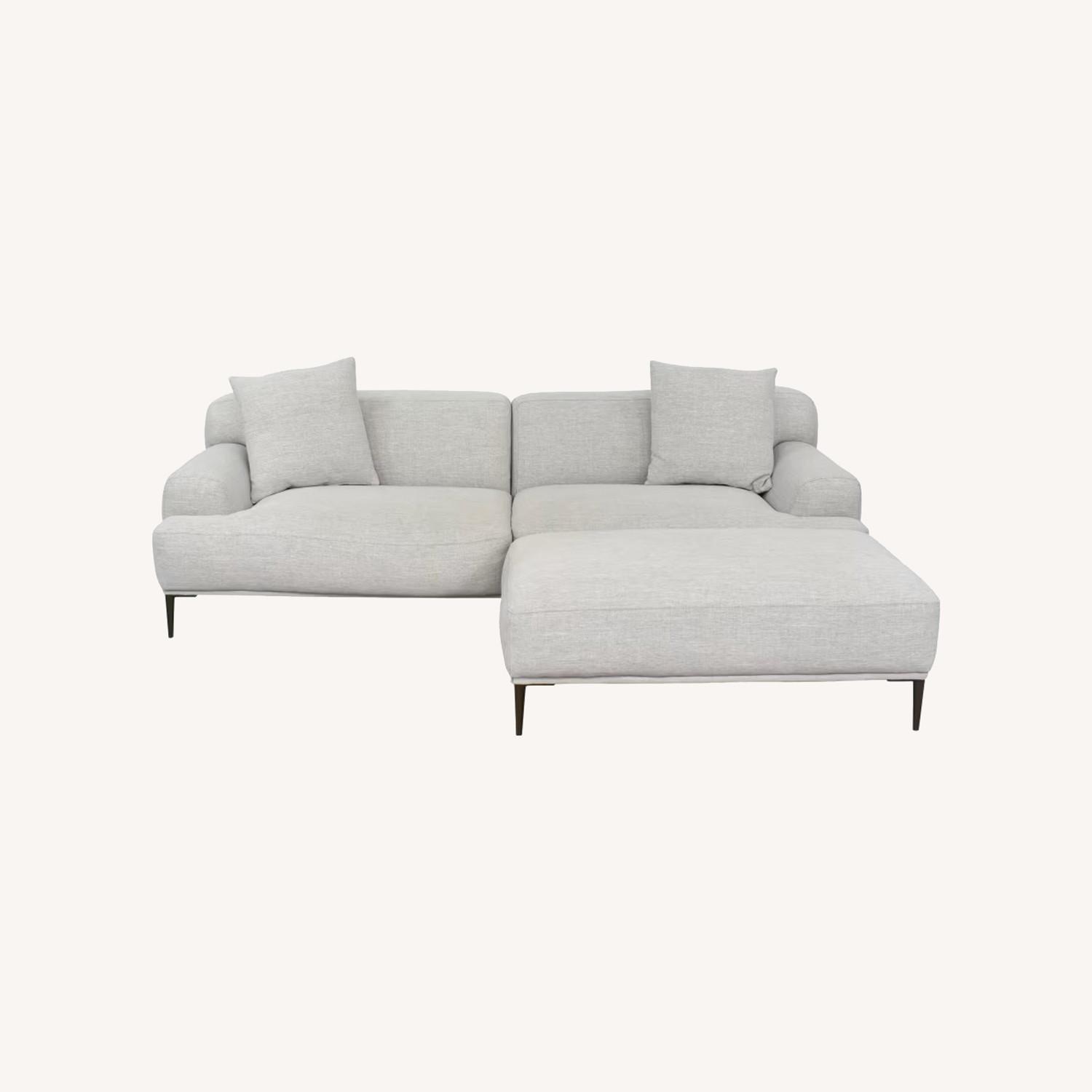 Seller's Notes:Article Abisko Sofa and Ottoman in Mist Gray. Both in perfect condition and includes the two matching pillows as well!