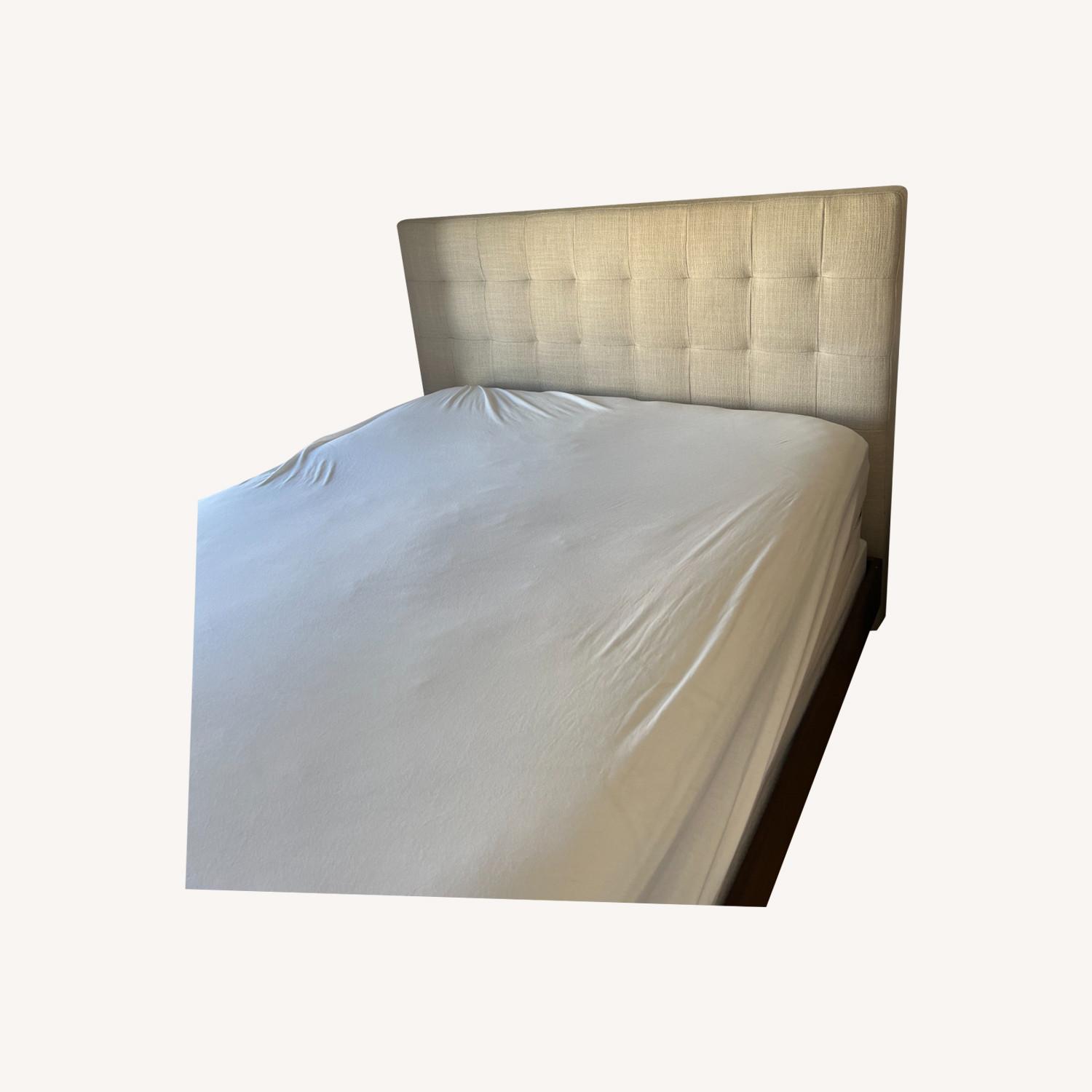 Seller's Notes:Upholstered in a lightly textured soft fabric Foam-padded tufted headboard No bed frame included ( Could include box spring or mattress if of interest)