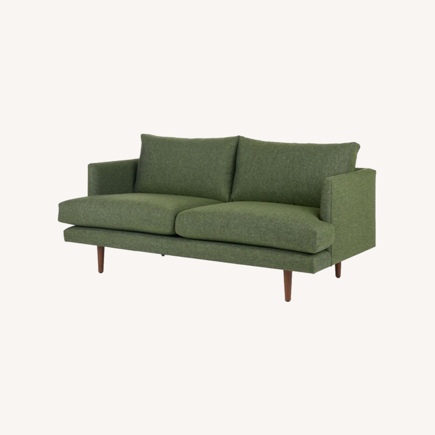 Seller's Notes:Article Furniture Burrard Forest Green Loveseat Original Price = $1299 https://www.article.com/product/14572/burrard-forest-green-loveseat Description For those that love an angular mid-century look. Clean lines, slender arms and tapered legs give this loveseat a strong but airy presence. Deep seats with comfortable cushions make naps and lounging a no-brainer.