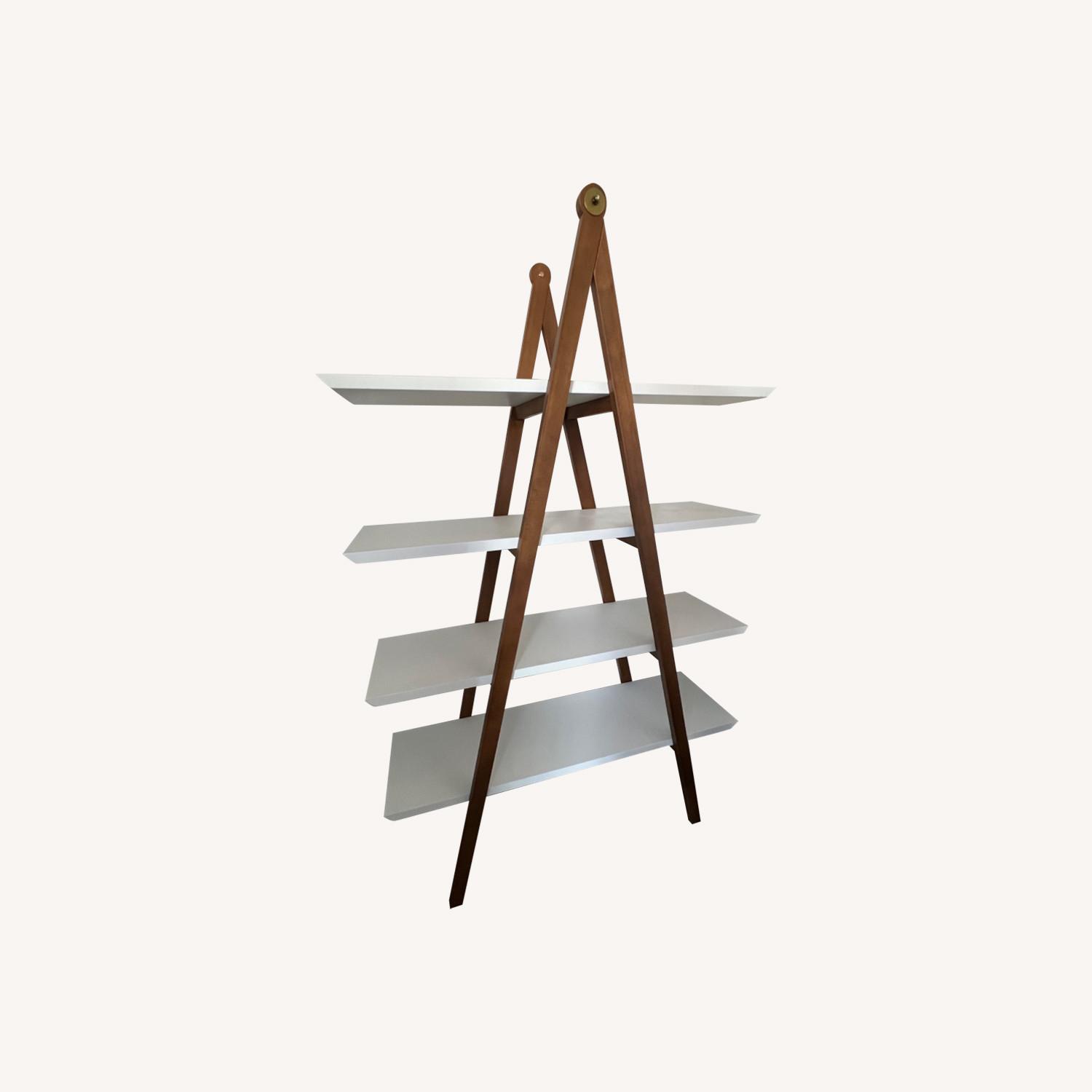 Seller's Notes:This bookcase is white and walnut. It really looks fantastic when you put all your things on it. Also can be a space divider. For shipping this piece we probably have to disassemble it.