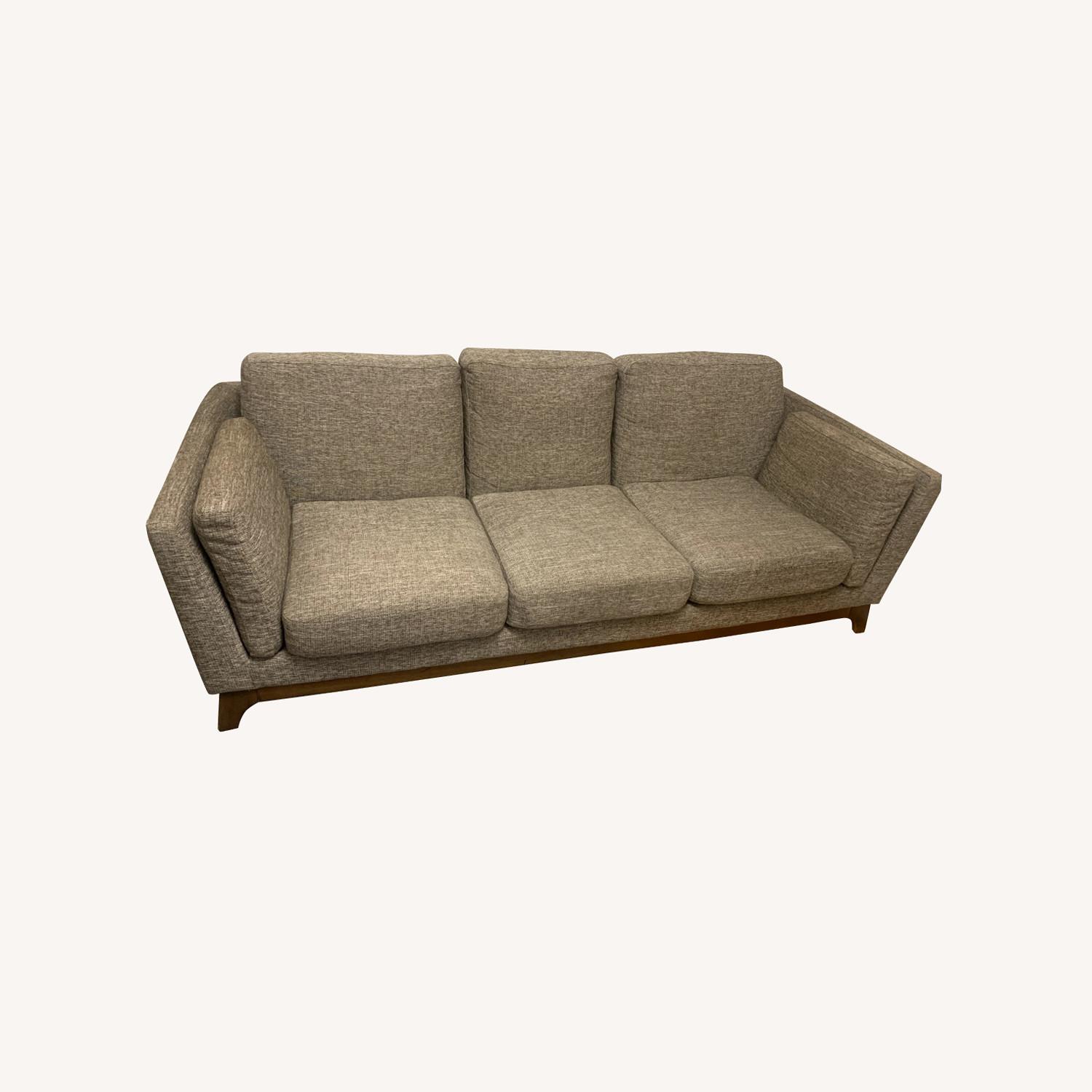 Seller's Notes:I bought this sofa lightly used for my new office (prior owner had sofa at home without any pet/odor exposure) starting in Dec 2023, but need to switch it out for a sofa that has a higher seat for my older clients. Asides from having a low seat, it is a very comfortable coach with soft seat cushions if this is your preference. There is a scratch on one of the wooden legs, but it is not visible with a rug underneath.