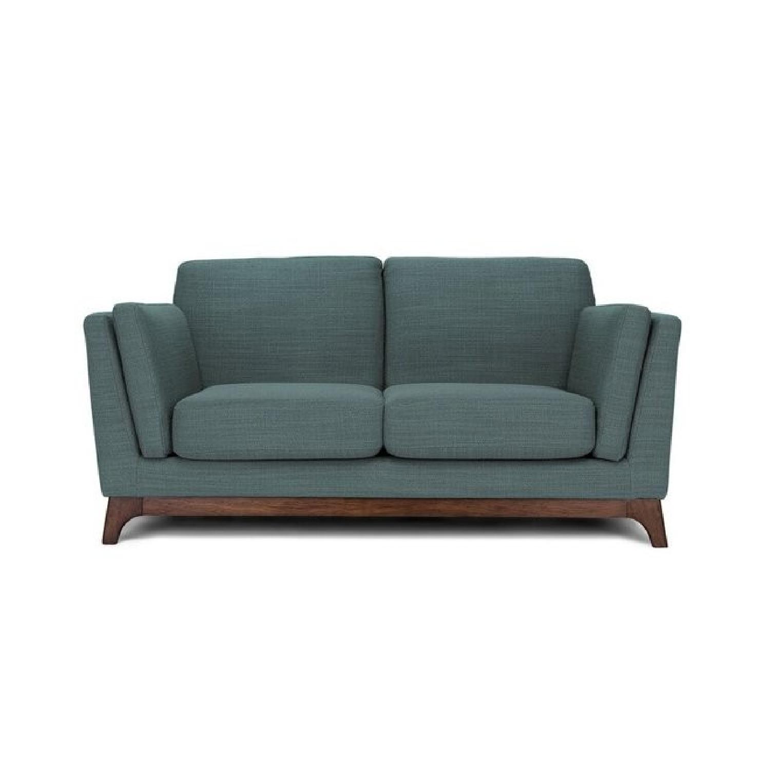 Seller's Notes:The Ceni loveseat fuses the classic with the modern with its plush seating, sleek track arms and clean design lines. Its beautifully crafted wooden base with slanted legs enhances its strong and sturdy construction, while its detachable cushion seats, backrests and armrests allow you to snuggle up comfortably. --Used but in good condition --The seat covers are pilling but a fabric shaver will do the trick --Moved to larger apt and replaced the larger couch