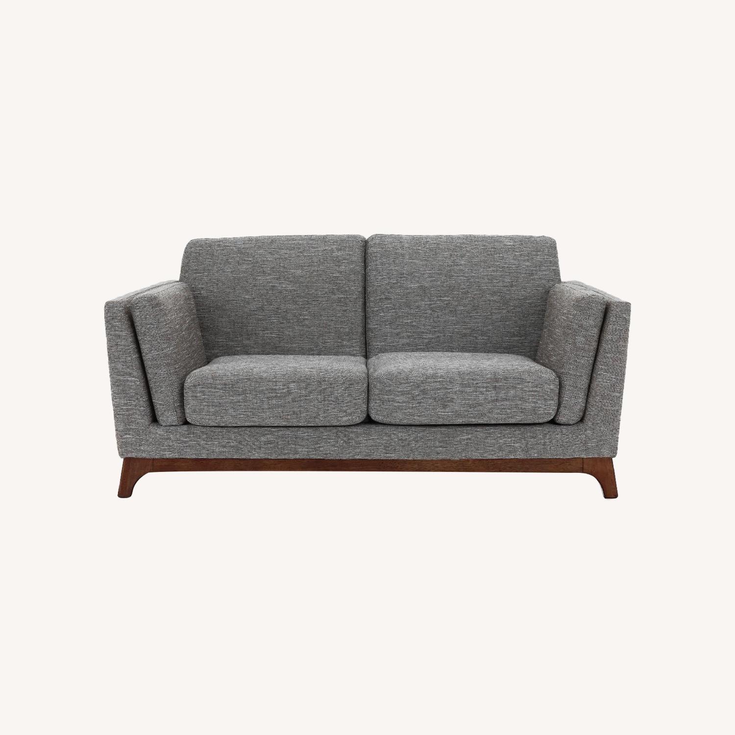 Seller's Notes:We owned this loveseat for under three years. We are two very clean individuals who travel a lot- the sofa is in great condition. The Ceni loveseat fuses the classic with the modern with its neutral tone, plush seating, sleek track arms and clean design lines. Its beautifully crafted wooden base with slanted legs enhances its strong and sturdy construction, while its detachable cushion seats, backrests and armrests allow you to snuggle up comfortably. FEATURES Solid wood legs High density foam wrapped in Polyester Loose seat cushions, backrests and armrests Track arms Upholstered in a durable Volcanic Gray fabric Assembly not required