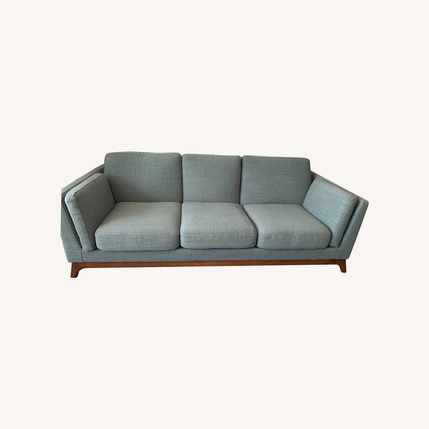 Seller's Notes:3 seater Article Ceni sofa in "Aquarius" which is an aqua color. It is 3 years old and in great shape, with a few small scratches on the wood. It is very sturdy and comfortable!