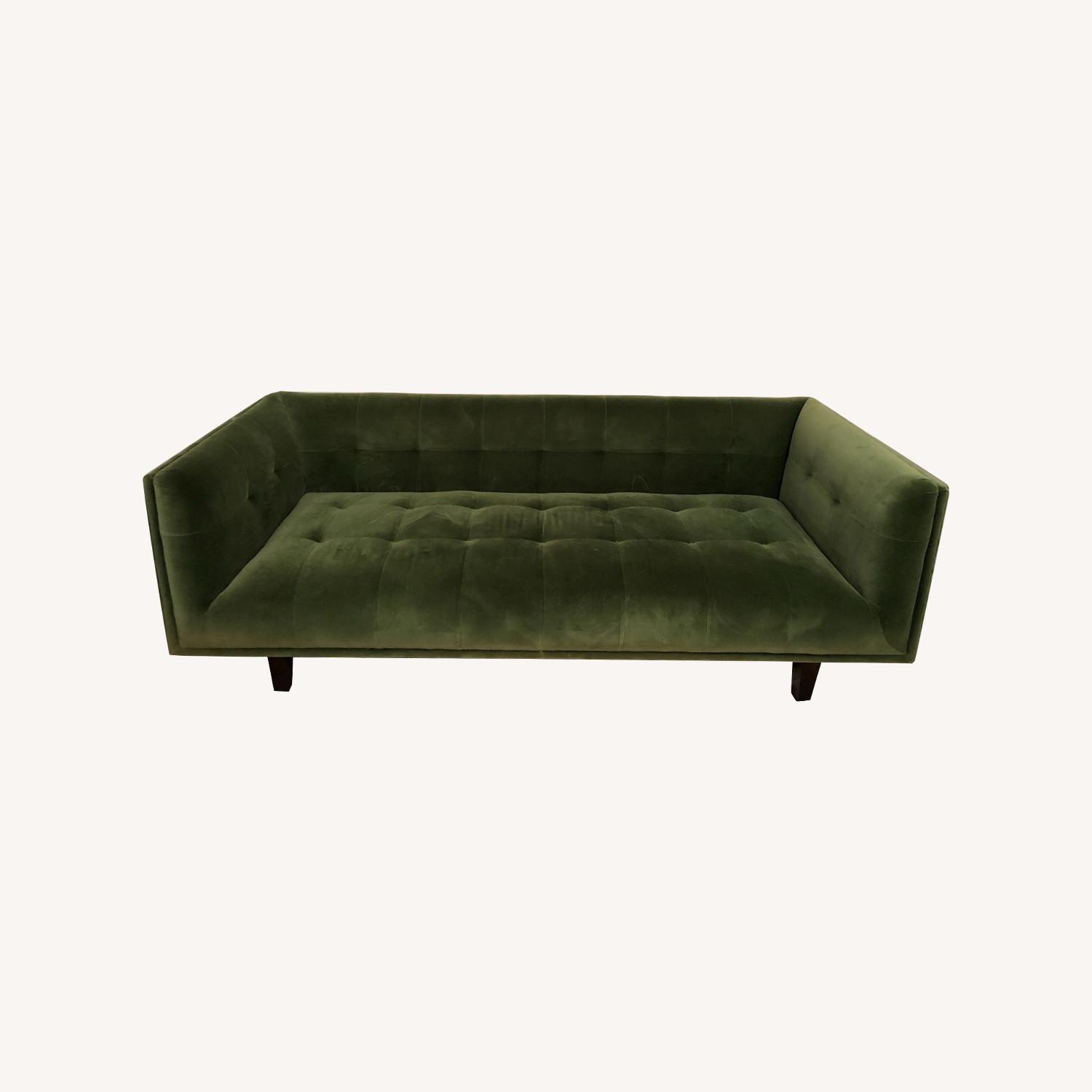 Seller's Notes:Have owned this Article Green Velvet couch for less than two years -- it is usually covered in pillows and is in relatively new condition with the exception of a little discoloration on the bottom. Our 15 pound French Bulldog sat on it occasionally but hasn't been in the apartment or around the couch since March.
