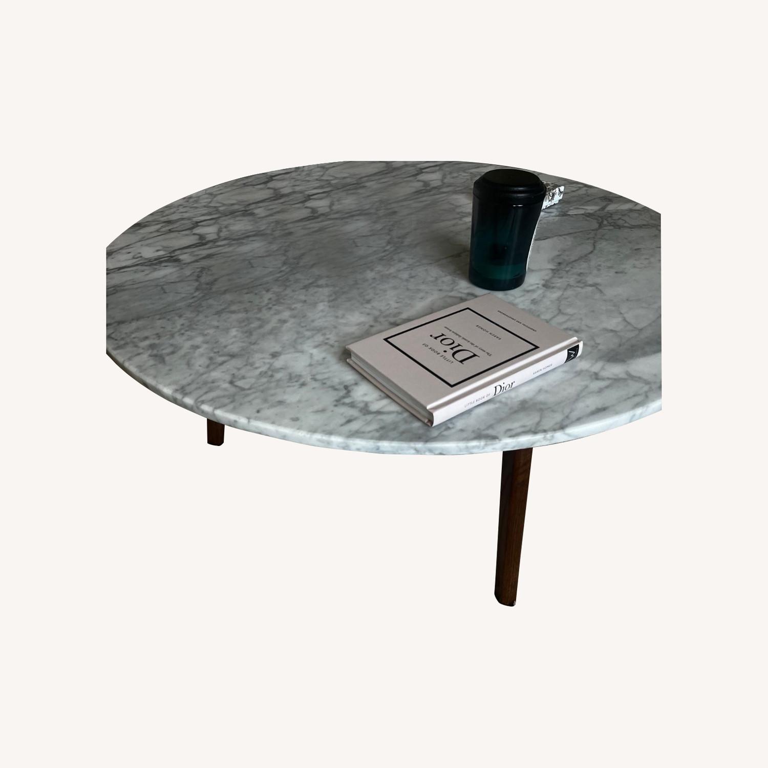 Seller's Notes:Perfect Condition , no stains or scratches on the marble or wood. The table is Natural Italian Carrara Marble and the wood is Engineered American White Oak. This is a Mid Century Modern Style coffee table and it is as good as new. Selling due to overseas move, furniture is in rarely used & looking for a new home!
