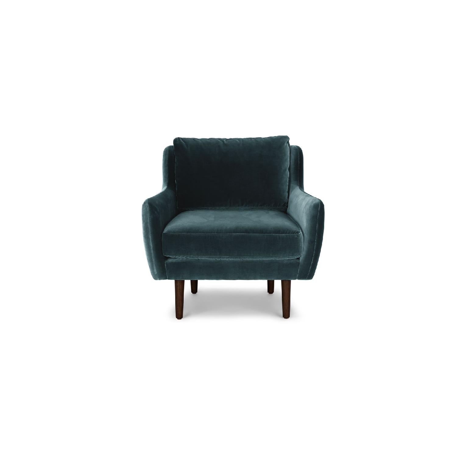Seller's Notes:Straight off the Paris runway, circa 1970. Rounded proportions and wooden legs give this compact chair a stylish edge while its size and comfort make it perfect for small space living. The Matrix is crafted from sumptuous velvet for undeniable comfort and style. The chair is in excellent condition, but there is a slight discoloration on the left side due to the sun. Least detailed oriented eyes won't perceive it.