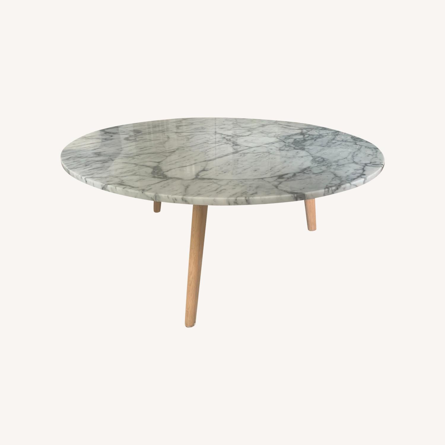 Seller's Notes:The Mara might not be as cute as your dog (because what could be?), but it’s just as dependable. Between its compact design and clean aesthetic, this mid-century modern-inspired coffee table looks right at home in any room of the house. Plus, the Mara is easy to move around so it's always there when you need it — think of it as your #1 companion (or #2, if you don't want to make Sparky jealous). Plus! Polished Marble top and oak legs. I love this table, but am moving and do not have the space for this gem. There is very very minor discoloration as a result of mugs & wine glasses, but you might have luck removing it! However, it is barely noticeable and adds character.