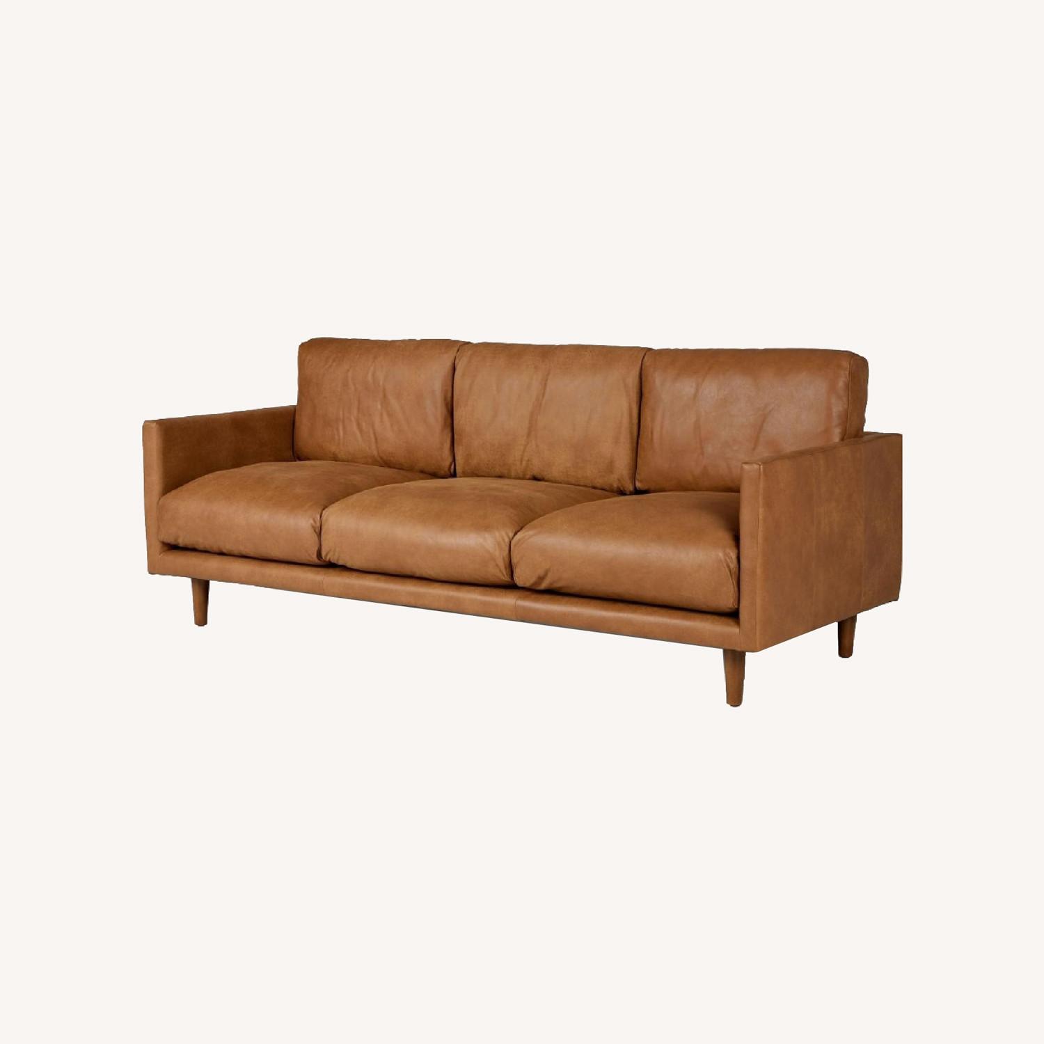 Seller's Notes:Beautiful leather sofa, with super-plush down-filled cushions, a corner-blocked wooden frame, and a leather patina that only gets better with age. Less than two years old with very little wear.