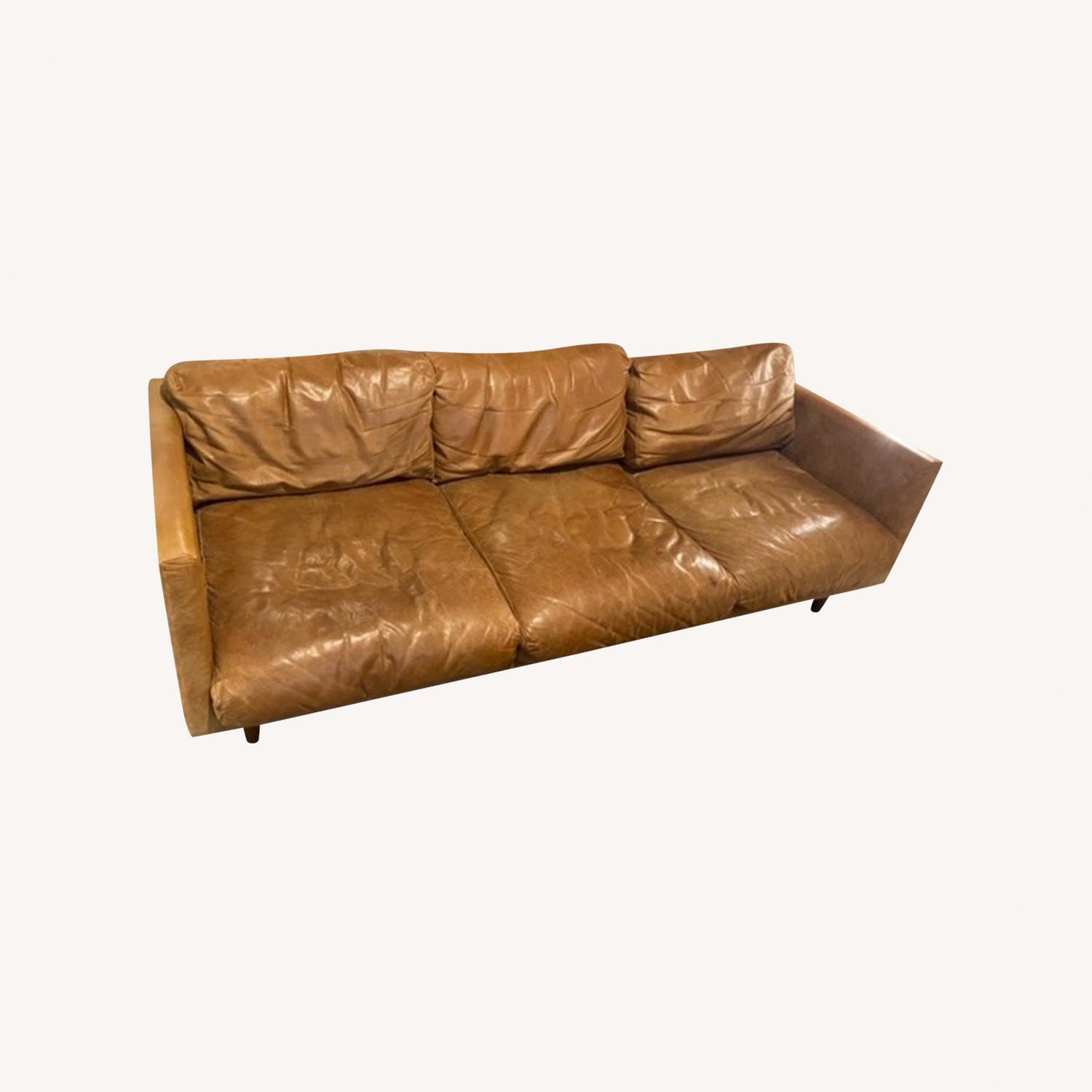 Seller's Notes:Article Nirvana Dakota Tan Sofa Purchased in 2021 We are growing our family and need a larger sectional couch so are selling this one. High quality leather, shows some wear and tear but generally is intended to have a "distressed" look. The couch is relatively light and easy to move into a new location.