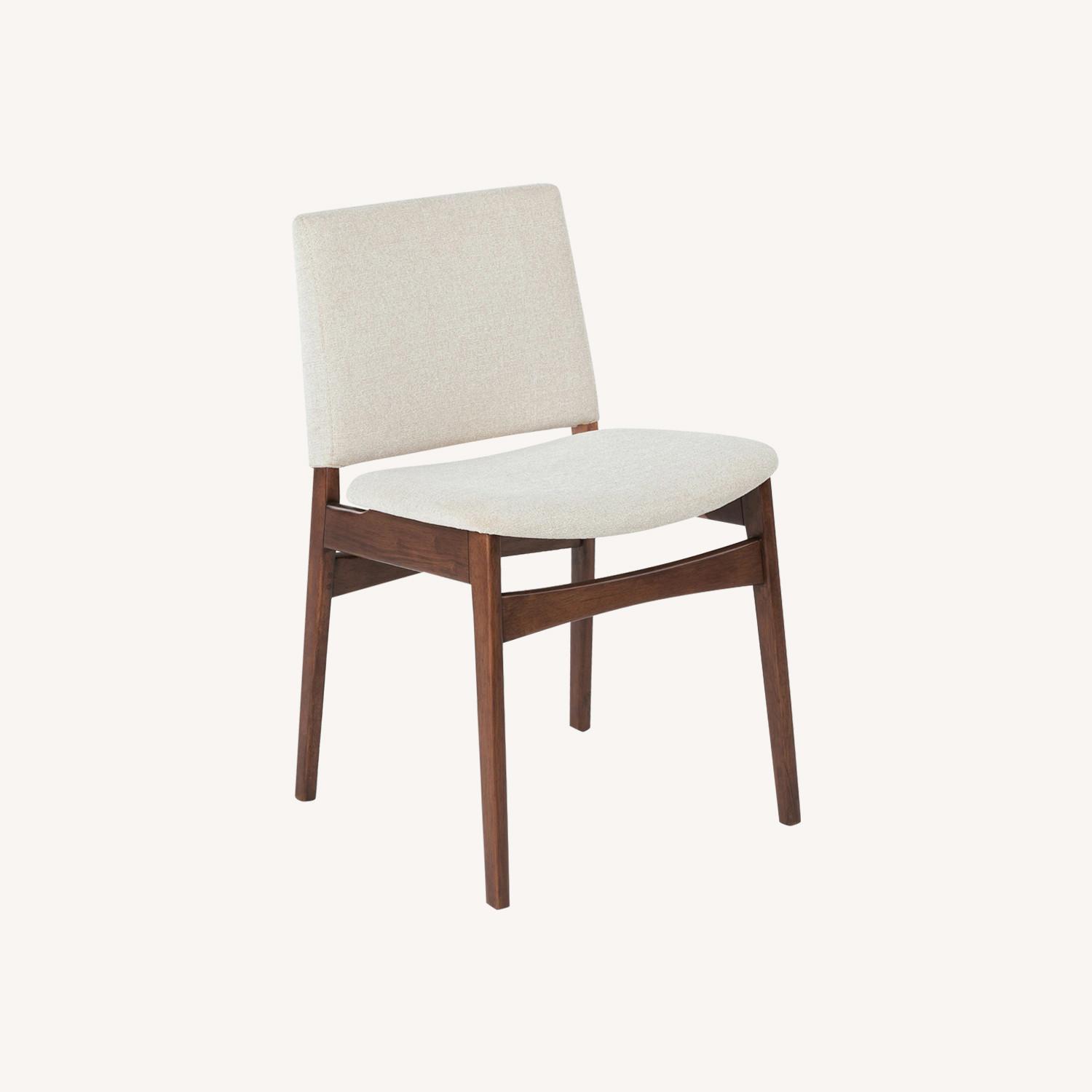 Seller's Notes:4 dining chairs in grey (looks more like a taupe in person), with walnut legs. A few small paint stains. Besides that, still in excellent condition!
