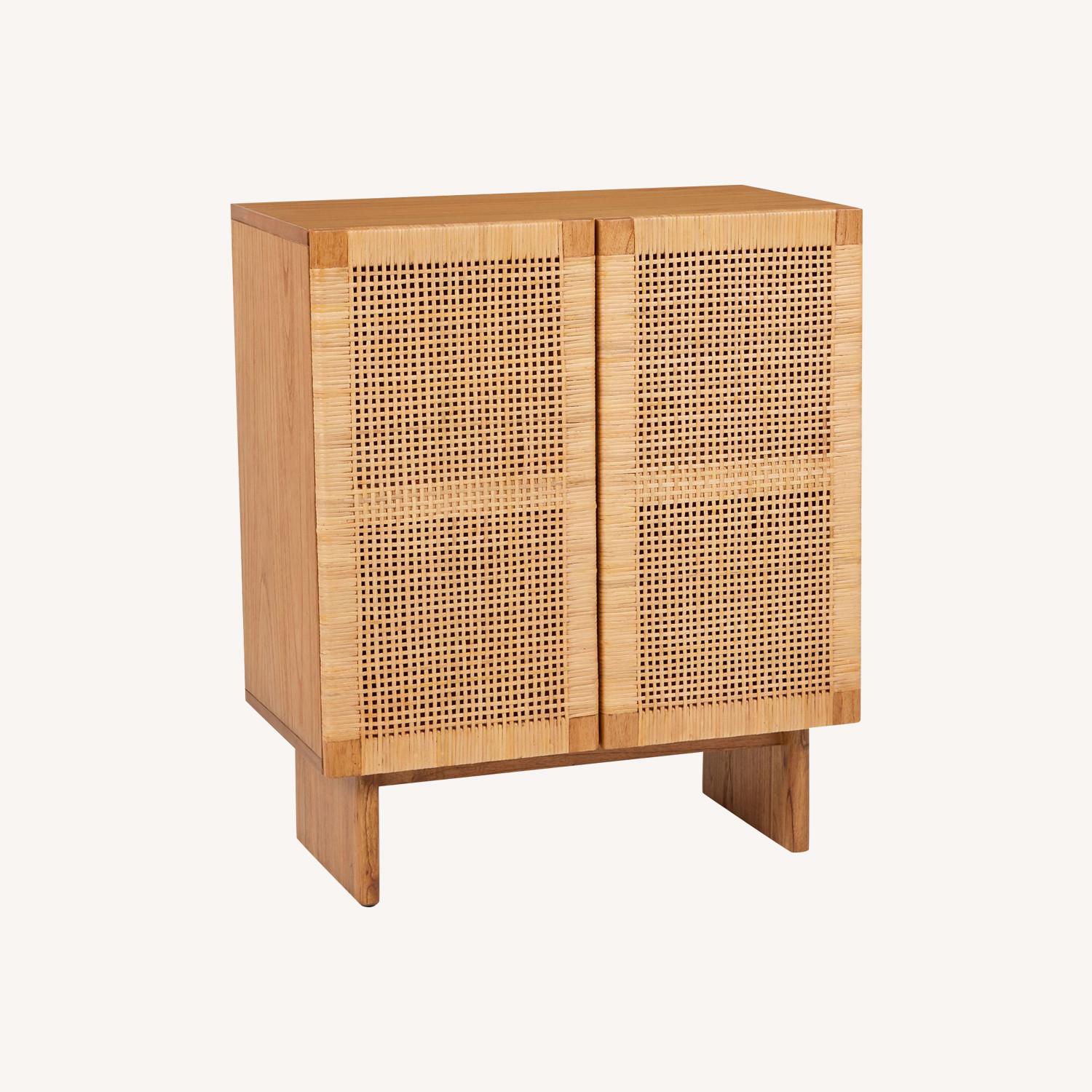 Seller's Notes:The island breeze of cabinets, the Noyko brings an air of vacation straight to your living room. Use it as a bar to store all your drink fixings or to declutter your space and reward yourself with a piña colada after. With those natural cane rattan doors, it's hard not to be inspired. Classically woven natural box cane pattern Constructed of solid and veneered wood Push to open door mechanism Adjustable shelves Natural cane will have variations in color and texture — no two pieces are exactly alike Warning! To ensure the safety of you, your family, and your guests, this item must be secured to the wall according to the product’s assembly instructions. Some assembly required (approximately 15 minutes)