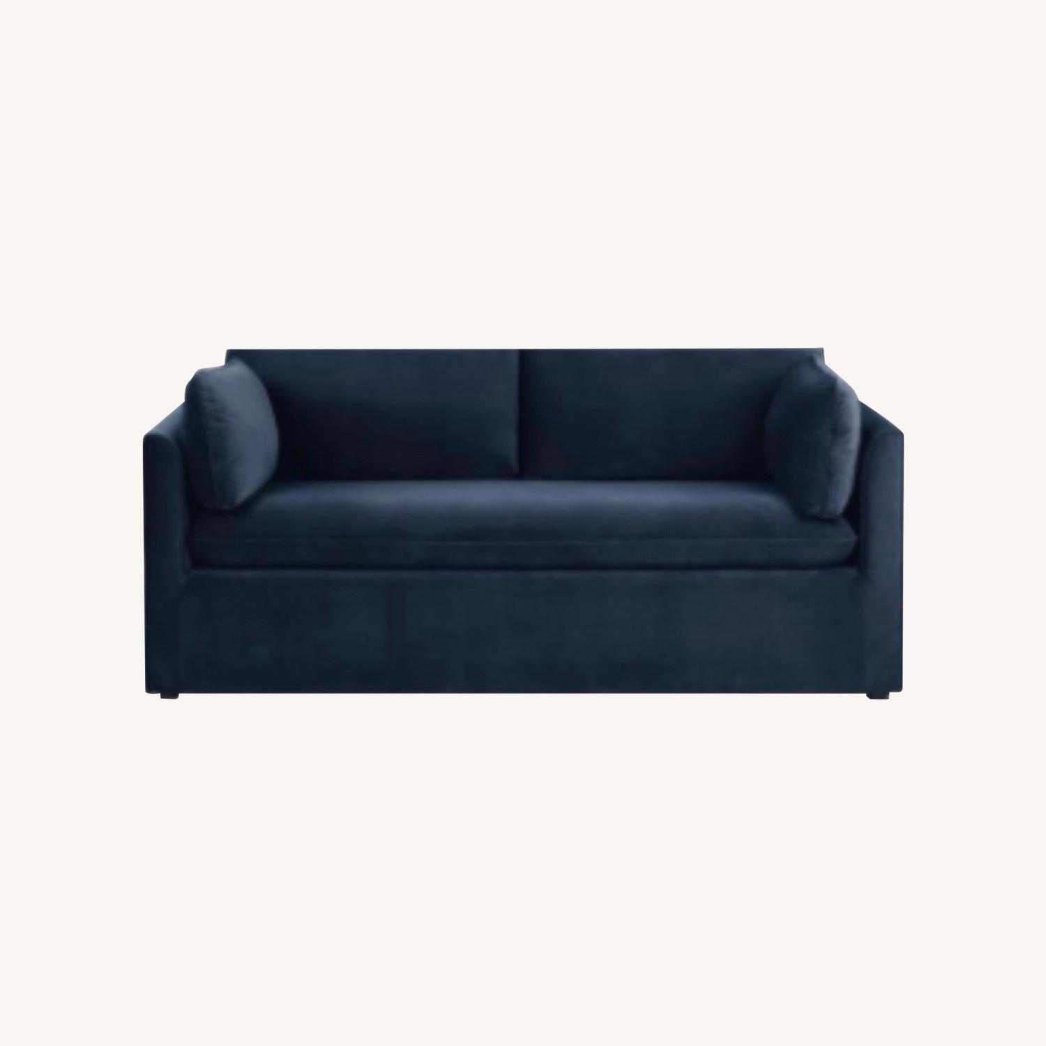Seller's Notes:This beautiful deep blue, velvet couch, used sparingly in a home office/guest room, is in like-new condition. Rarely used, as it served mostly as decor in the office space. The bed feature is incredibly easy to set up and fold away, making it both stylish and functional. We’d keep it if we didn’t need the extra room!