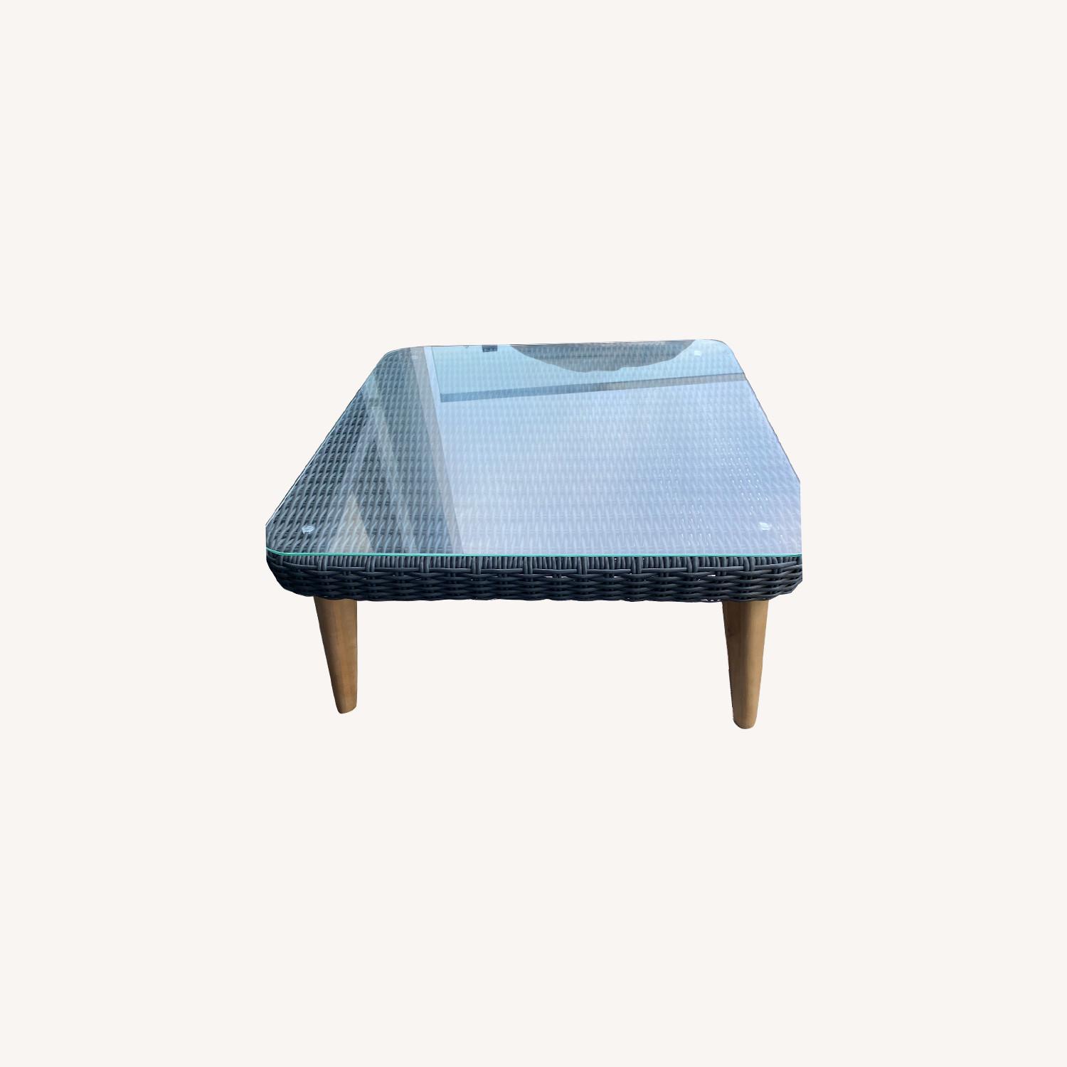 Seller's Notes:We love this table, and we have had it for less than a year - we are only opting to sell it because the dimensions do not quite work with our balcony's dimensions. It is in great condition and has barely seen any use at all. We have been storing the table indoors to preserve the glass and wicker.