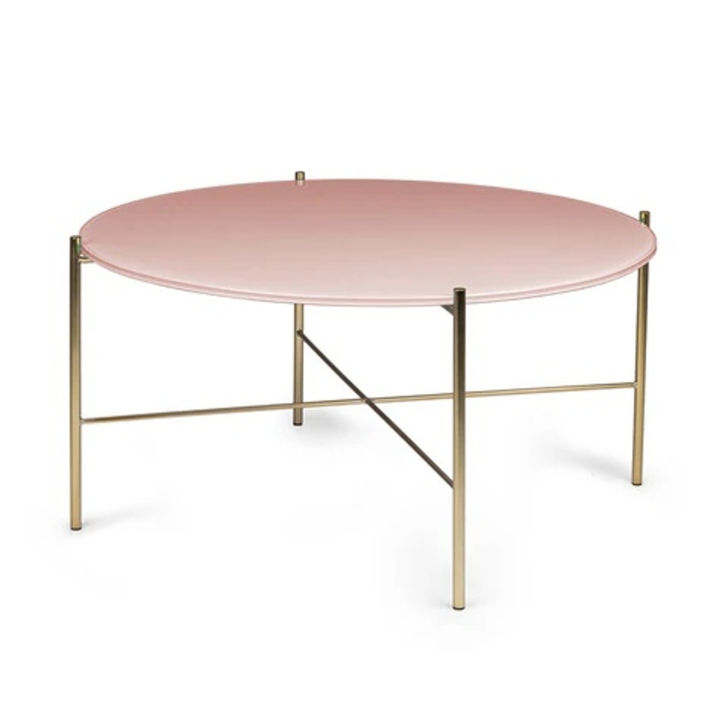 Seller's Notes:Like new pink glass coffee table by article (out of stock). Selling due to an apartment redesign