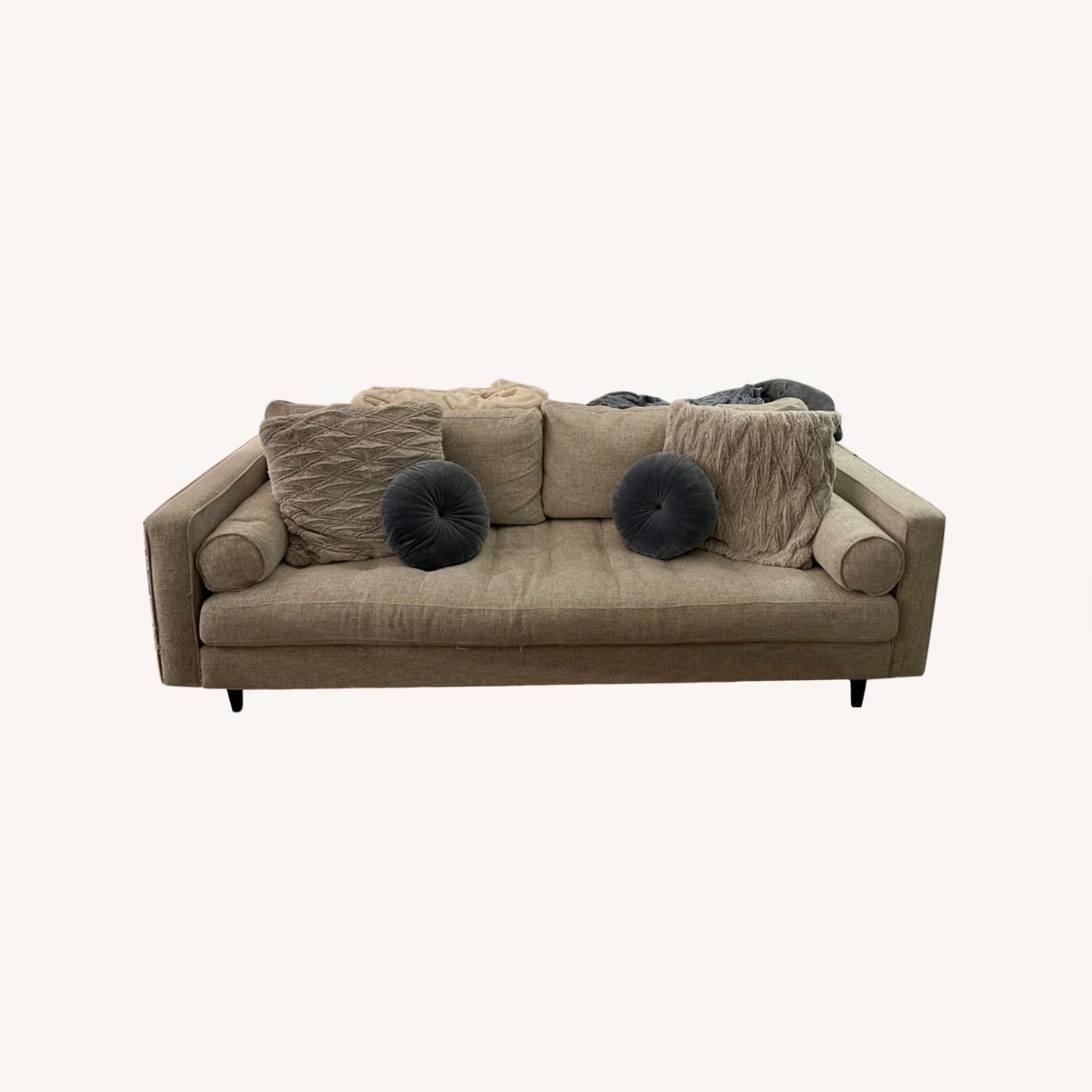 Seller's Notes:Beautiful couch that I have to get rid of as it won’t fit in my new apartment’s elevator. Only a year old, really good condition with just a few scratches on the sides. No stains or discoloration.