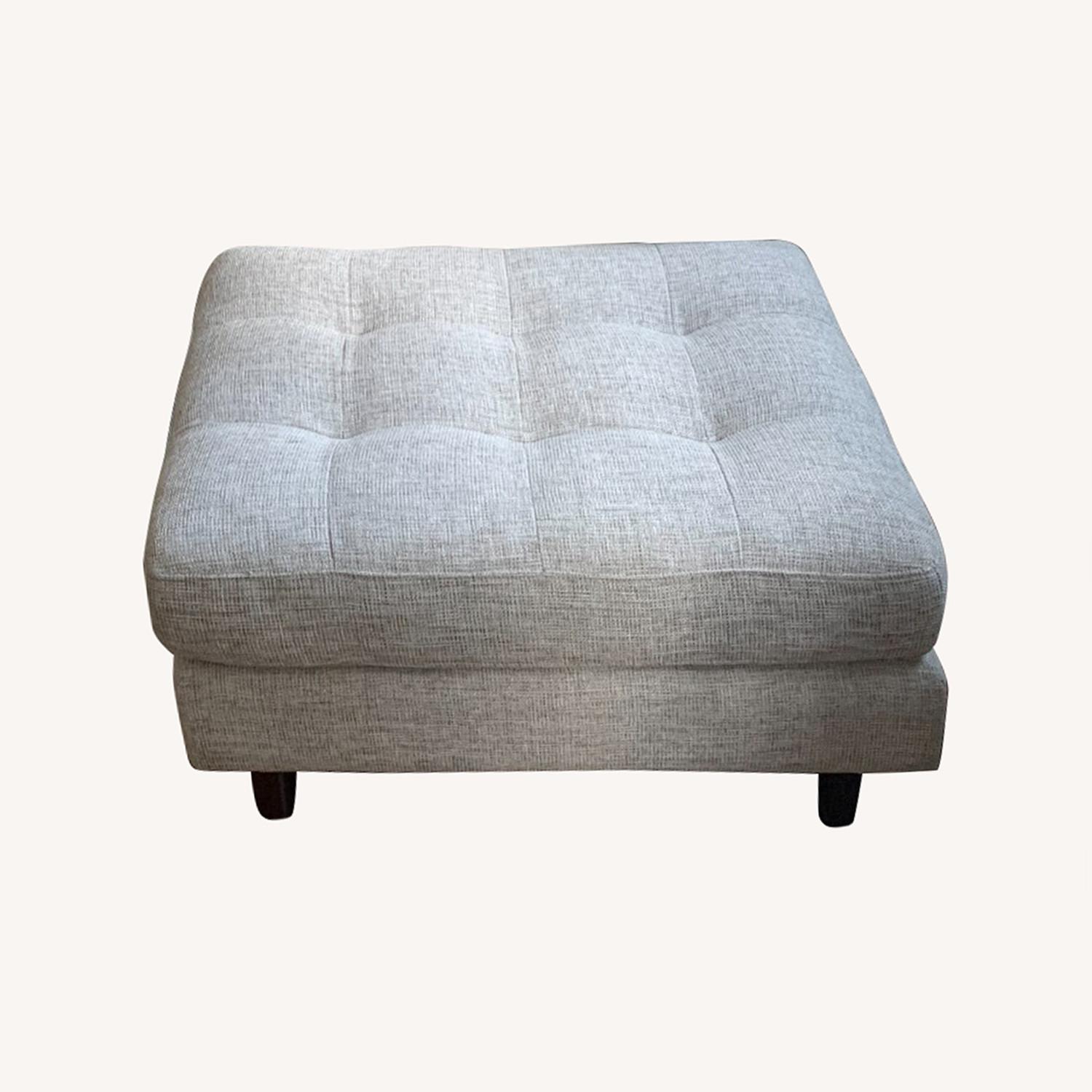 Seller's Notes:Beautiful tufted, square ottoman. Fabric, birch ivory (looks light grey). Matches Article's Sven sofa/loveseat (listing couch separately) - makes beautiful, flexible sectional couch with both. Short walnut legs - easy to stuff things underneath, great for small space living.
