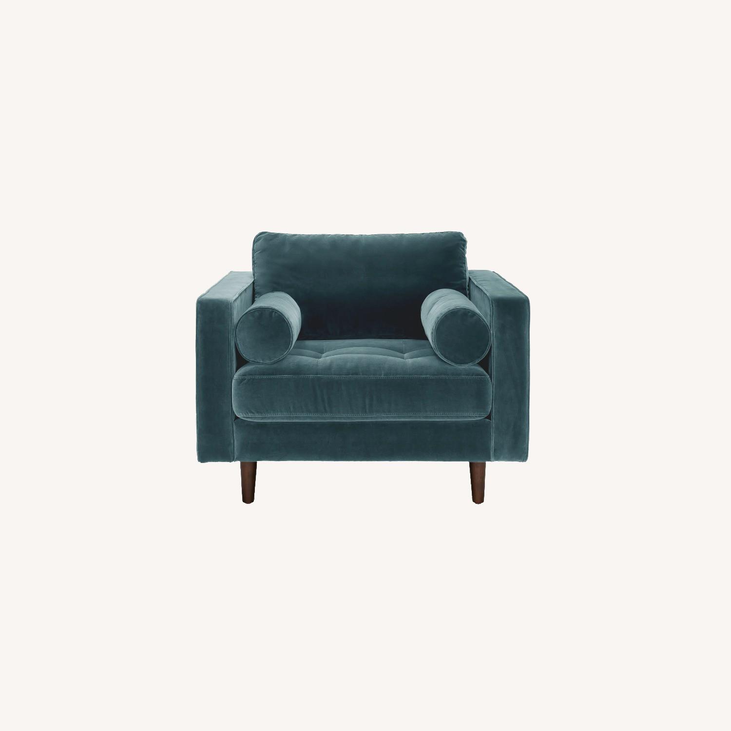 Seller's Notes:Article's most popular sofa, reimagined as a large, cozy lounge chair. This modern take on a mid-century classic features clean lines, a tufted seat, and a luxuriously stuffed back cushion. Two matching round bolsters complete the look. This chair was hardly used. It was purchased just before Covid as a second chair for when friends or family visited, but I can count on two hands the number of visits I've had in the past three years. Delivery available, offers accepted.