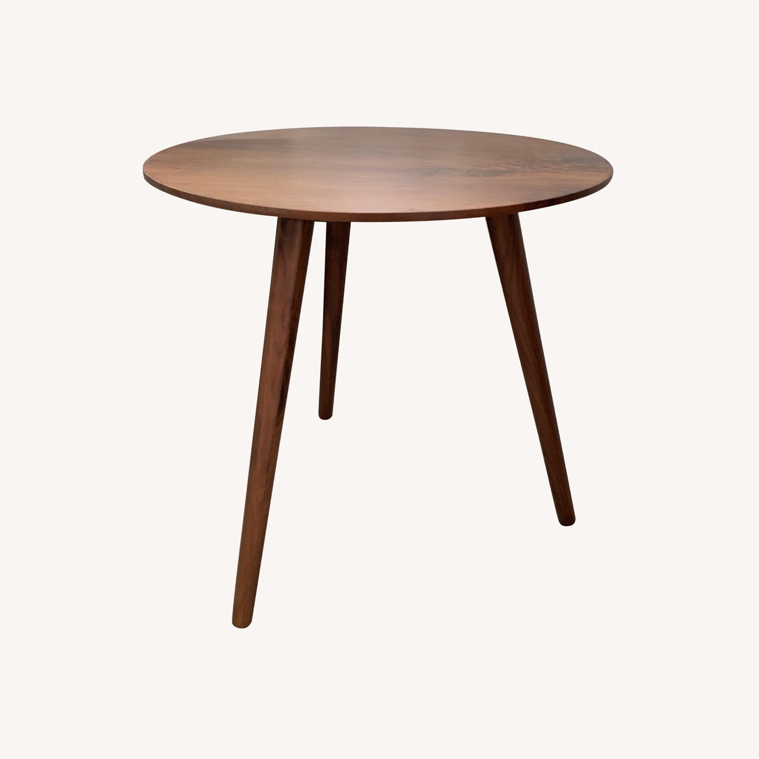 Seller's Notes:Accentuate your space with the mid century modern Amoeba end table. Several pieces of American Black Walnut are laminated together to form a beautiful table top with visible knots and color variation. ~RLDU