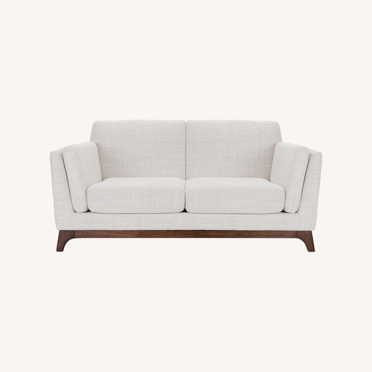 Seller's Notes:Features as noted from website: Upholstered in a soft, lightly-textured fabric Solid and composite wood frame Solid wood legs Low profile Loose seat, back, and arm cushions with removable covers Foam-padded and fiber-filled cushions Note: Pillows included in photos come with purchase for free! (If buyer wants them)