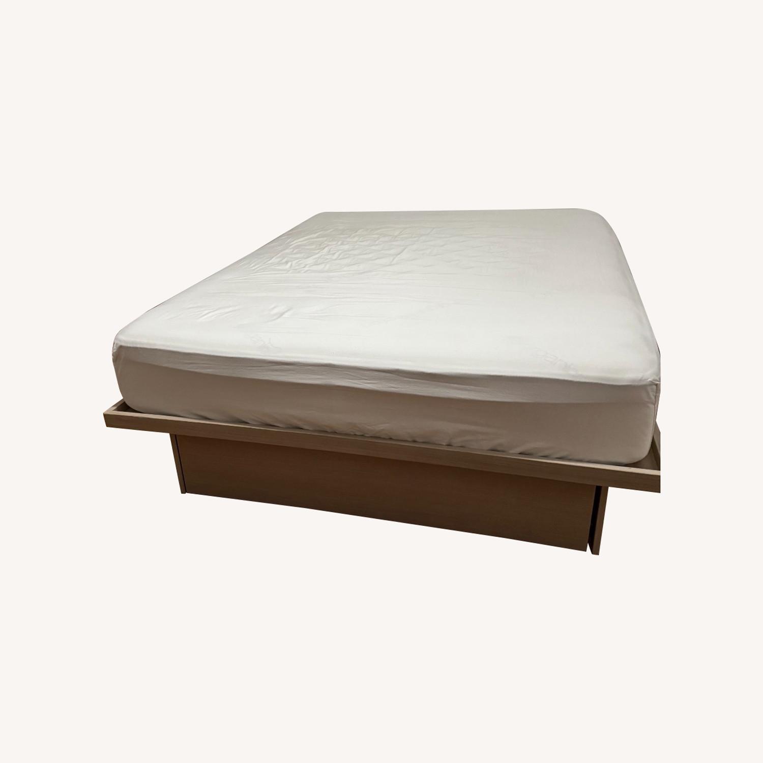 Seller's Notes:An artisan craftsman made this minimal bed frame just for me. A unique piece with four storage drawers, the bed is sold oak. Sadly, I'm downsizing so I must give the bed up.