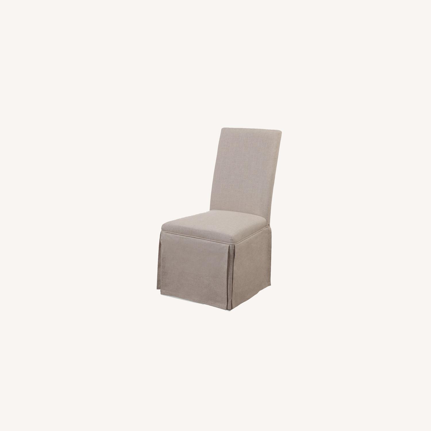 Seller's Notes:"The Uriel Skirted Parsons Chair features hardwood legs, fully skirted Jefferson Linen Fabric, and a high density foam seat cushion packed 2 per carton Assembled Weight: 35 pounds"