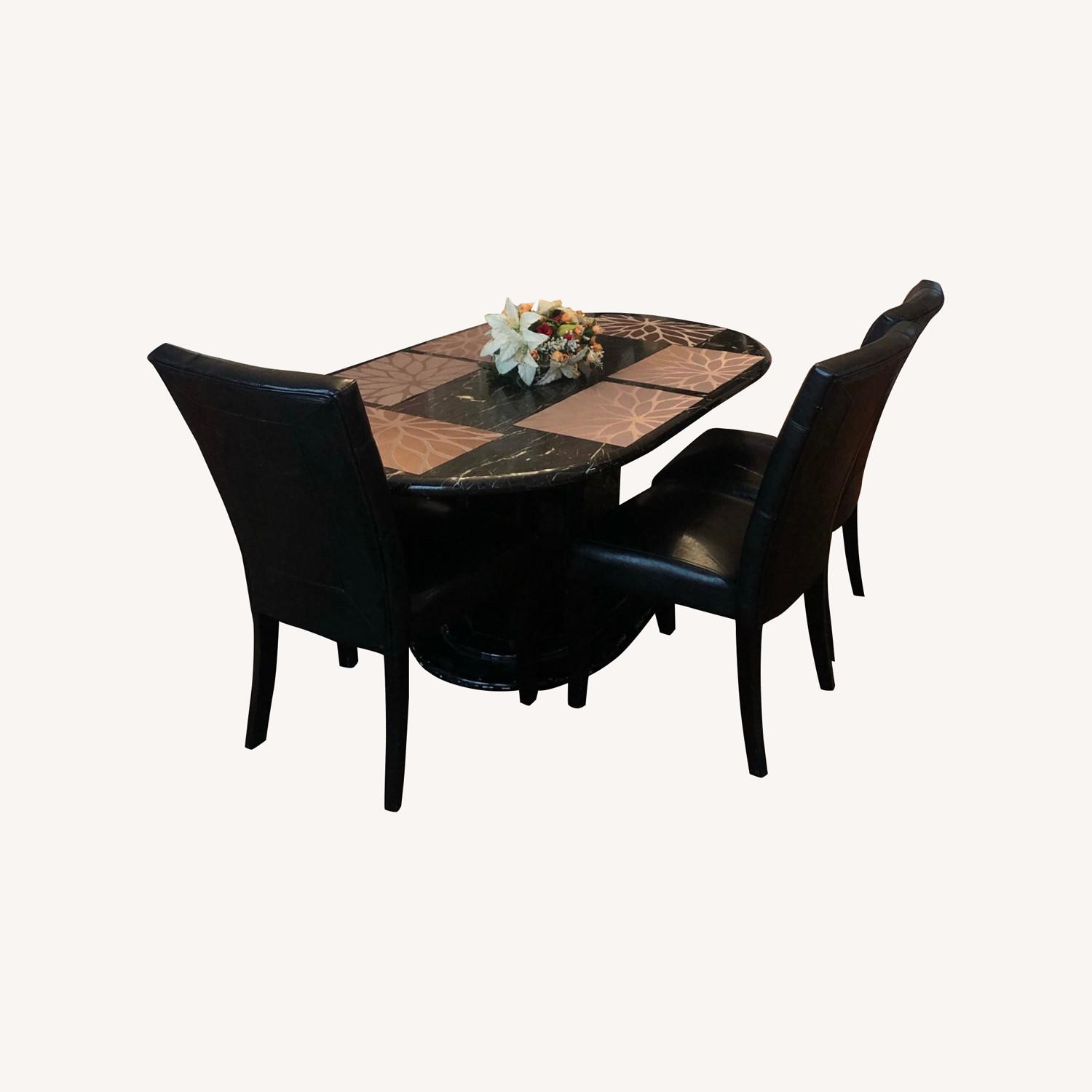 Seller's Notes:Table Great condition, base needs a little bit of a retouch but other than that great condition very heavy recommend delivery! Niche/ cabinet display is also included! Dimensions are not accurate is this is an oval dining room table (seats 6)