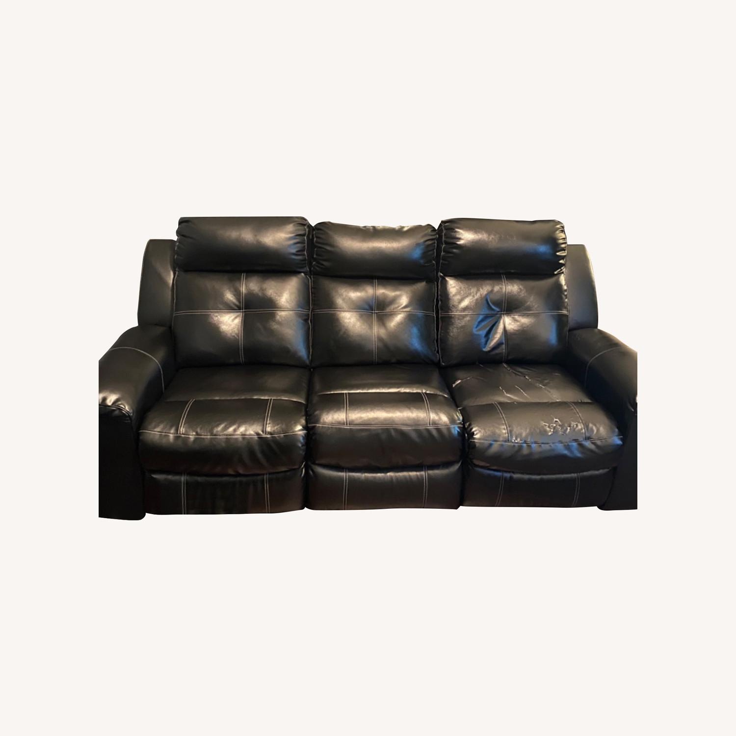 Seller's Notes:Black leather reclining sofa is only 2 1/2 years old, small repairs needed on one of the sofa seat and arm. There are 2 recliners, LED lights underneath sofa.