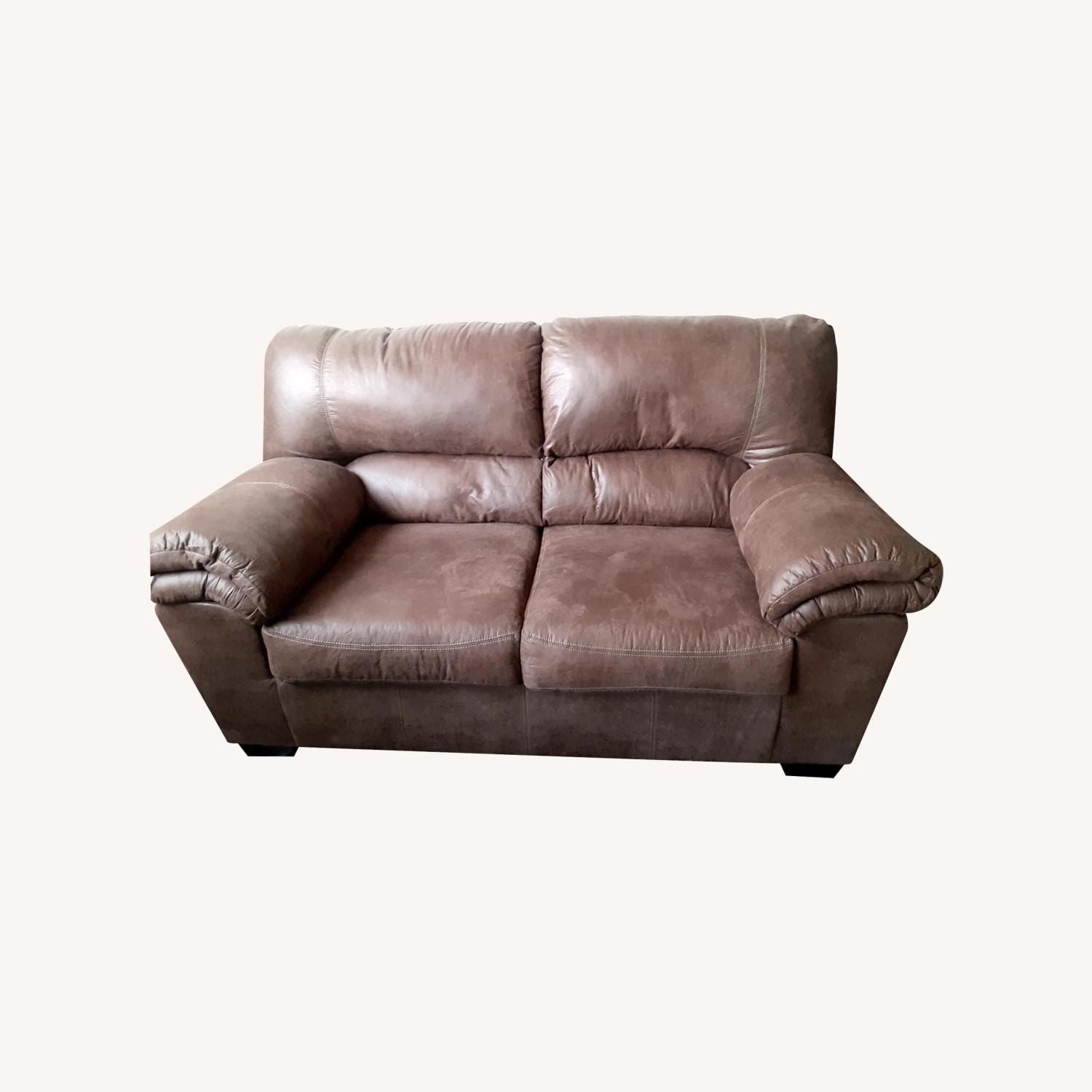 Seller's Notes:This loveseat was used in my home office room. It hasn't been used much as most of my time sitting was in a desk chair. I am redecorating my apartment and decided to replace this with something that has low and recessed arms. The seat cushions are removeable. One seat has visible scratch marks made from my dog but going over the fabric with your hand you can't feel it. It is comfortable to stretch out on, the arm cushioning is really soft.