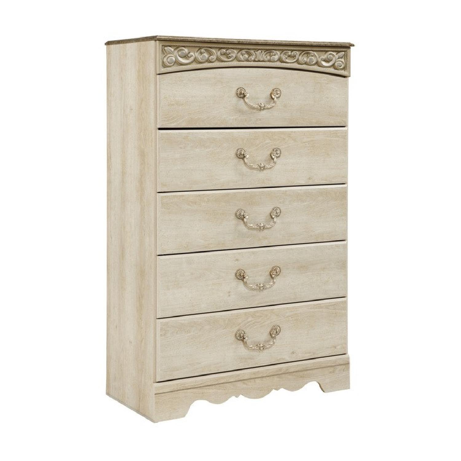 Seller's Notes:BECAUSE OF DROPSHIPPING TIME, SHIPMENTS CAN TAKE AROUND TWO WEEKS. Alive with a light elegant style, the “Catalina” bedroom collection is bathed in an airy opulent finish that beautifully accents the deeply carved scrolling motif with champagne color tipping and the ornate flowing headboard and mirror inserts to create the perfect traditional setting for your bedroom’s decor. "Sales tax is included in item price."